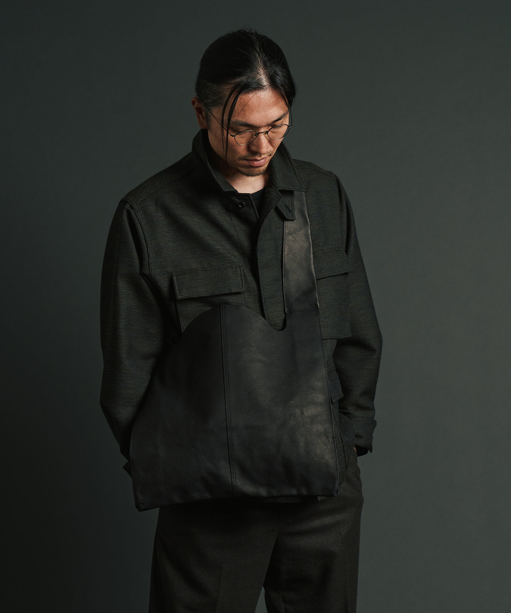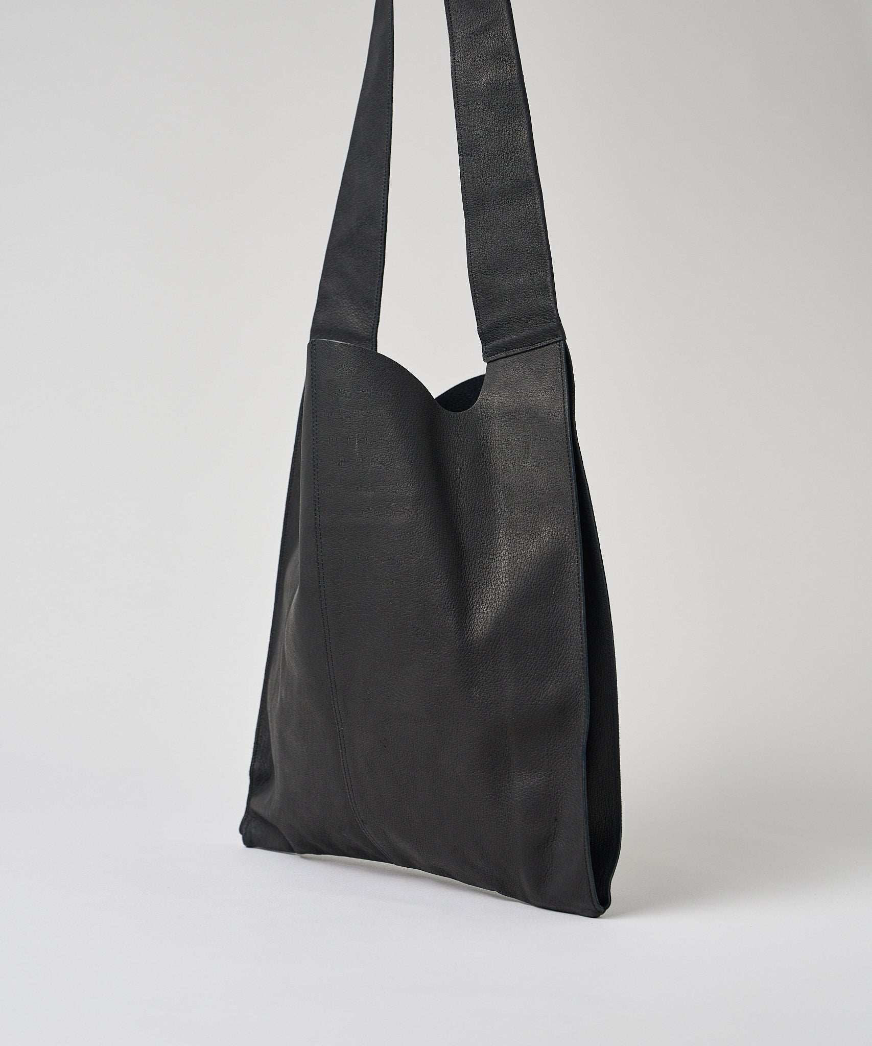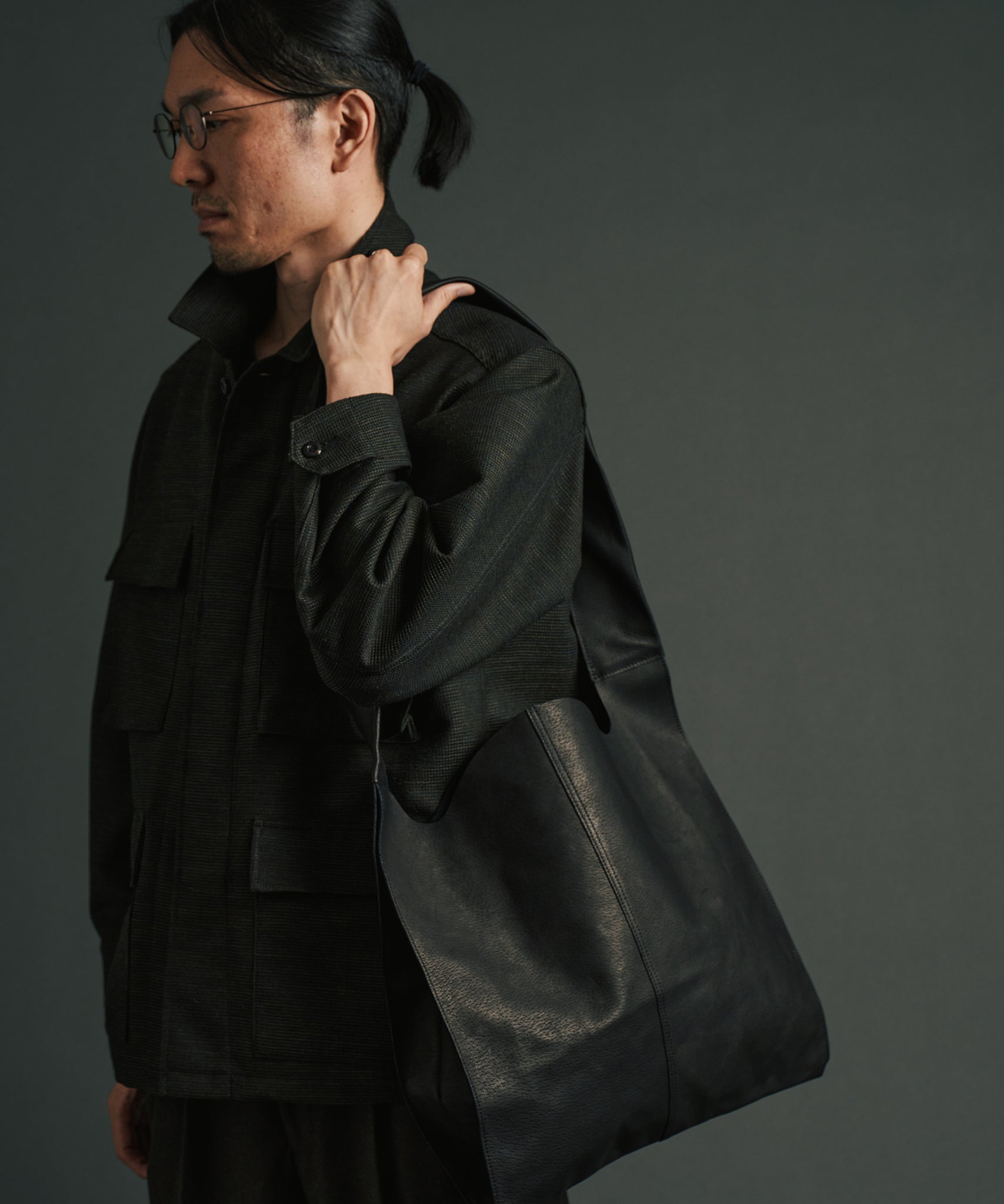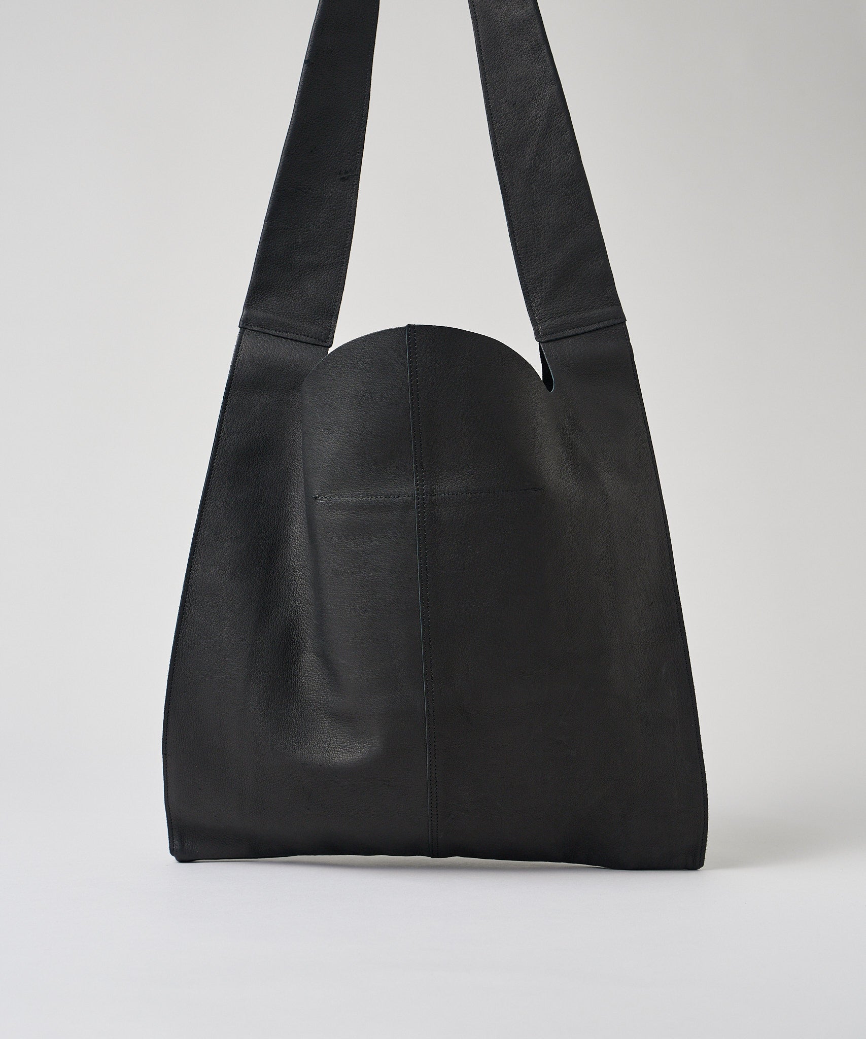 以日常生活中極為熟悉的購物袋為靈感,設計成單肩款式的皮革肩背包