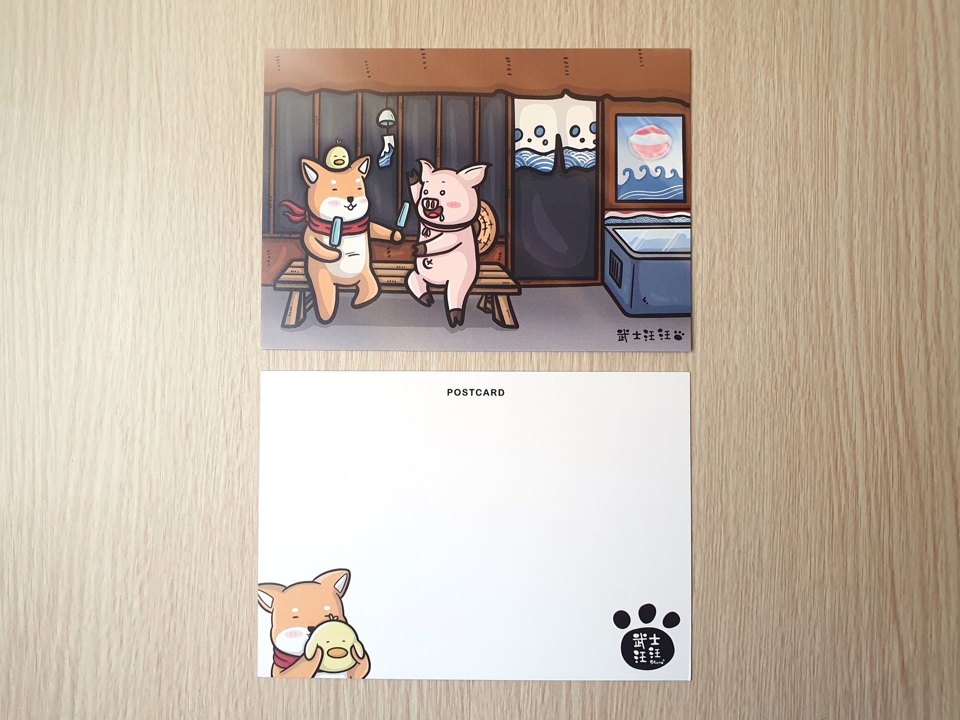 【武士汪汪】插畫商品 明信片-炎炎夏日一起吃支冰消暑吧!