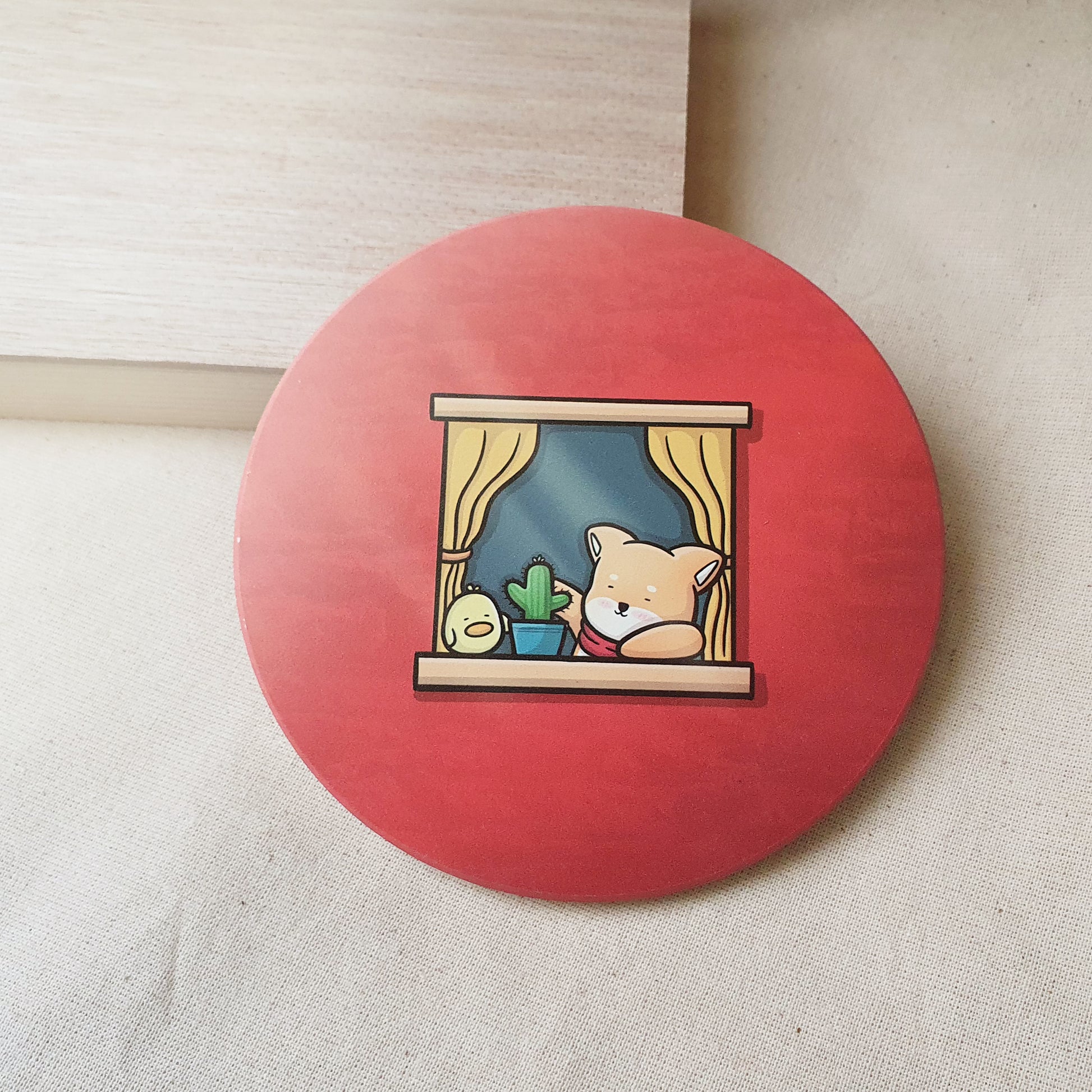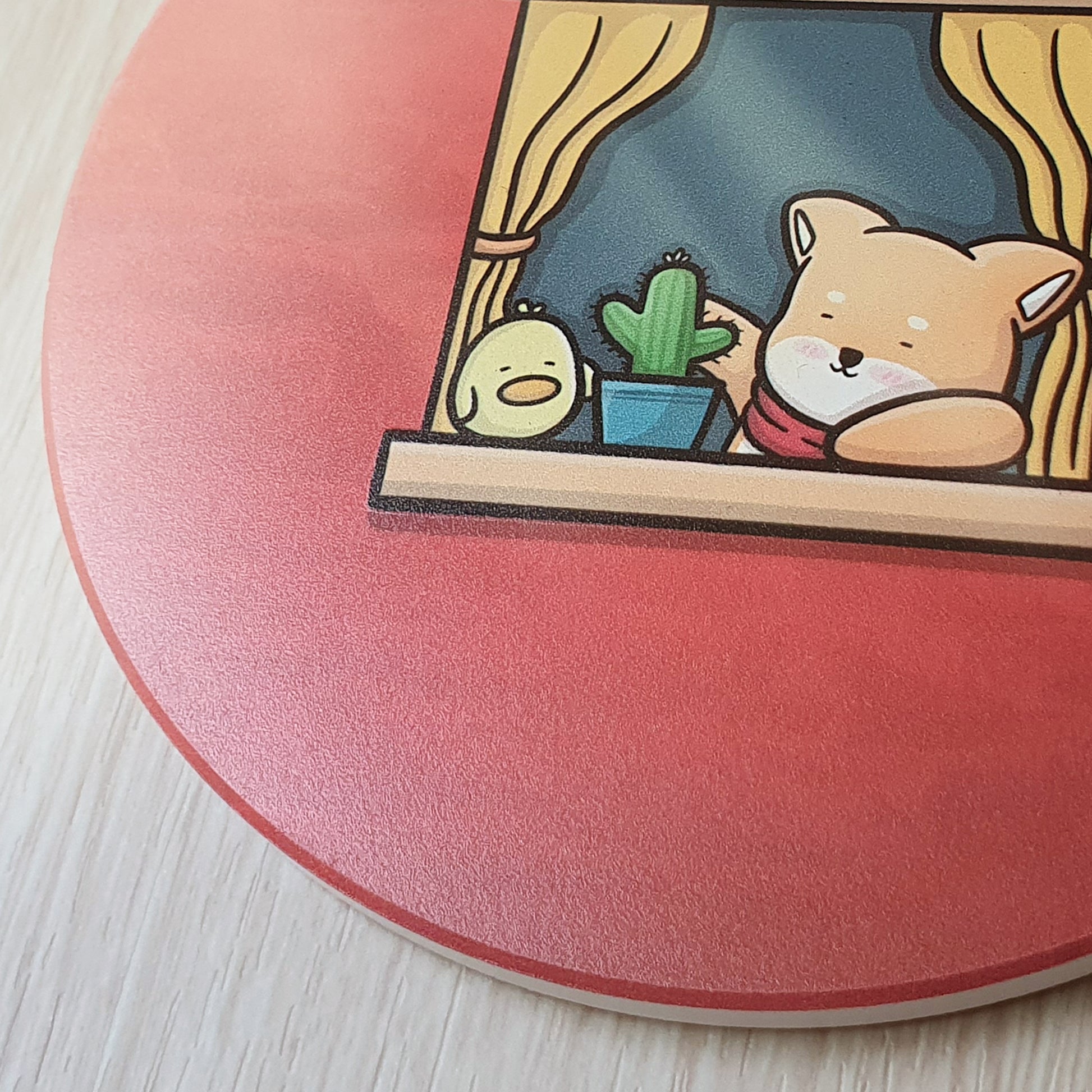 【武士汪汪】鶯歌陶瓷吸水杯墊-柴柴的悠閒午後