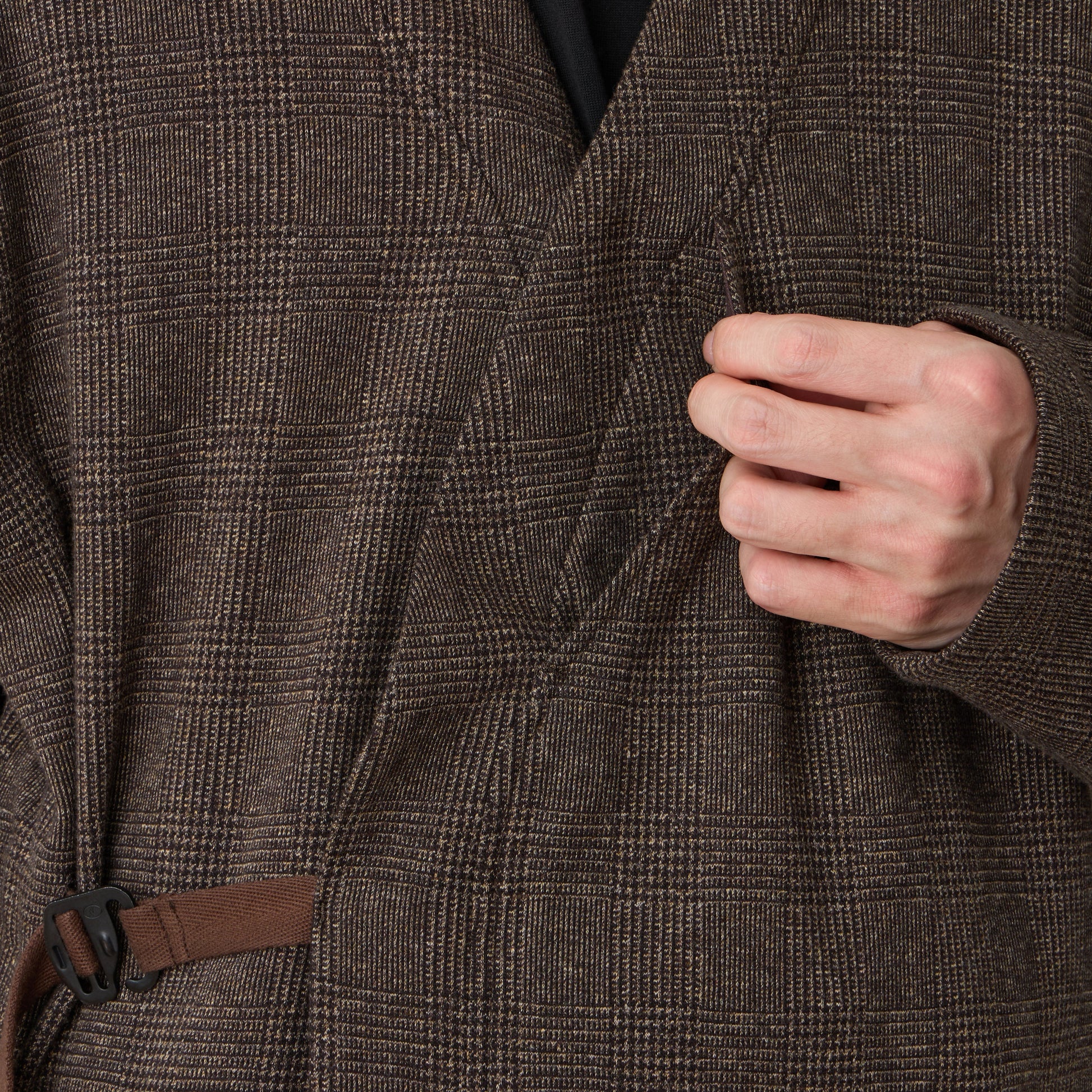 ● 選用 羊毛混紡格紋布料,帶有溫暖手感與細膩層次,色彩深邃而富有質感
