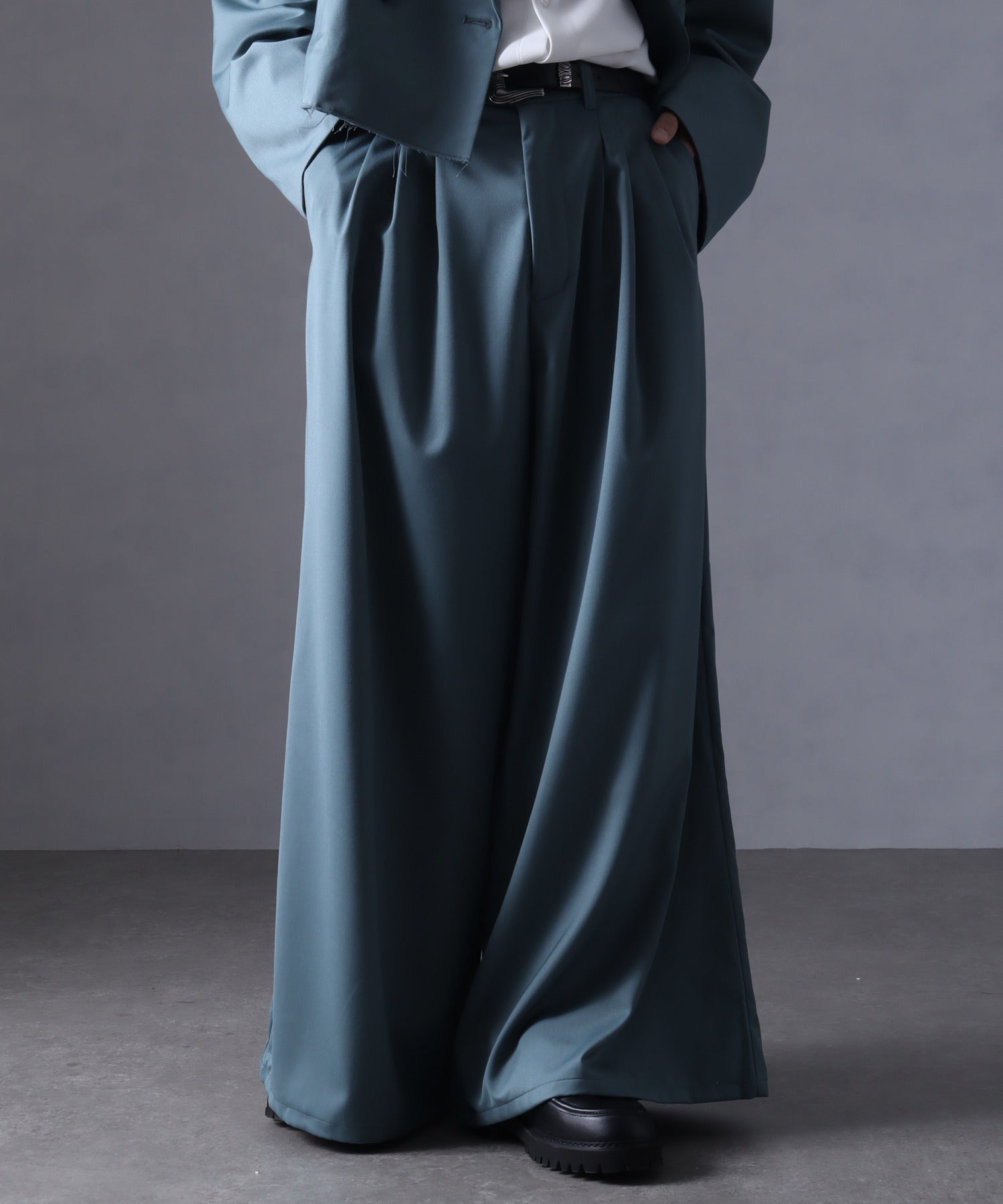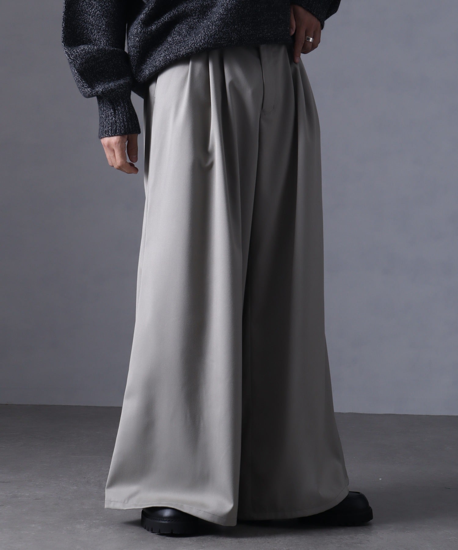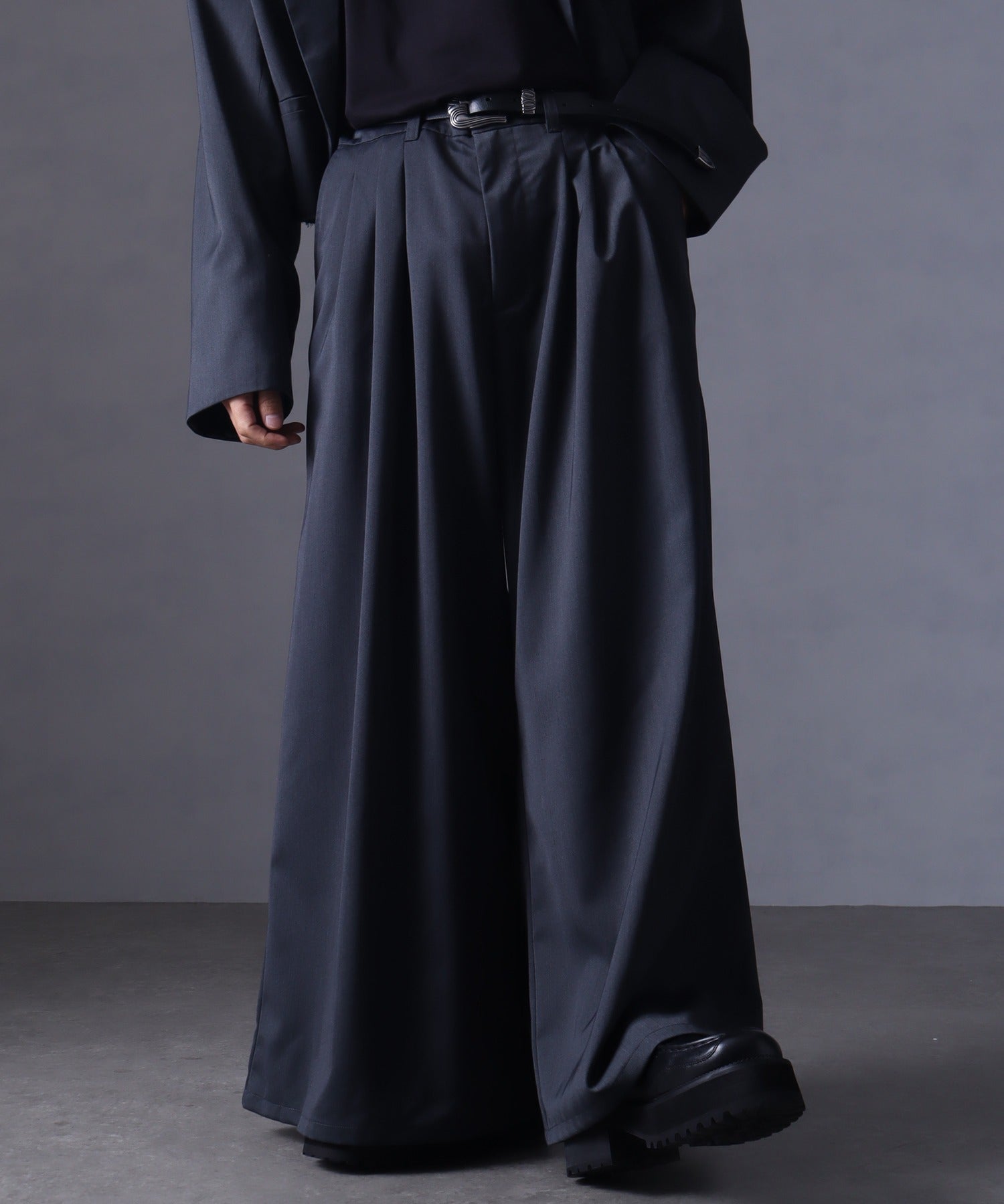 由 3 道打褶向外延伸的極寬版型,展現極致的摩登時尚氛圍