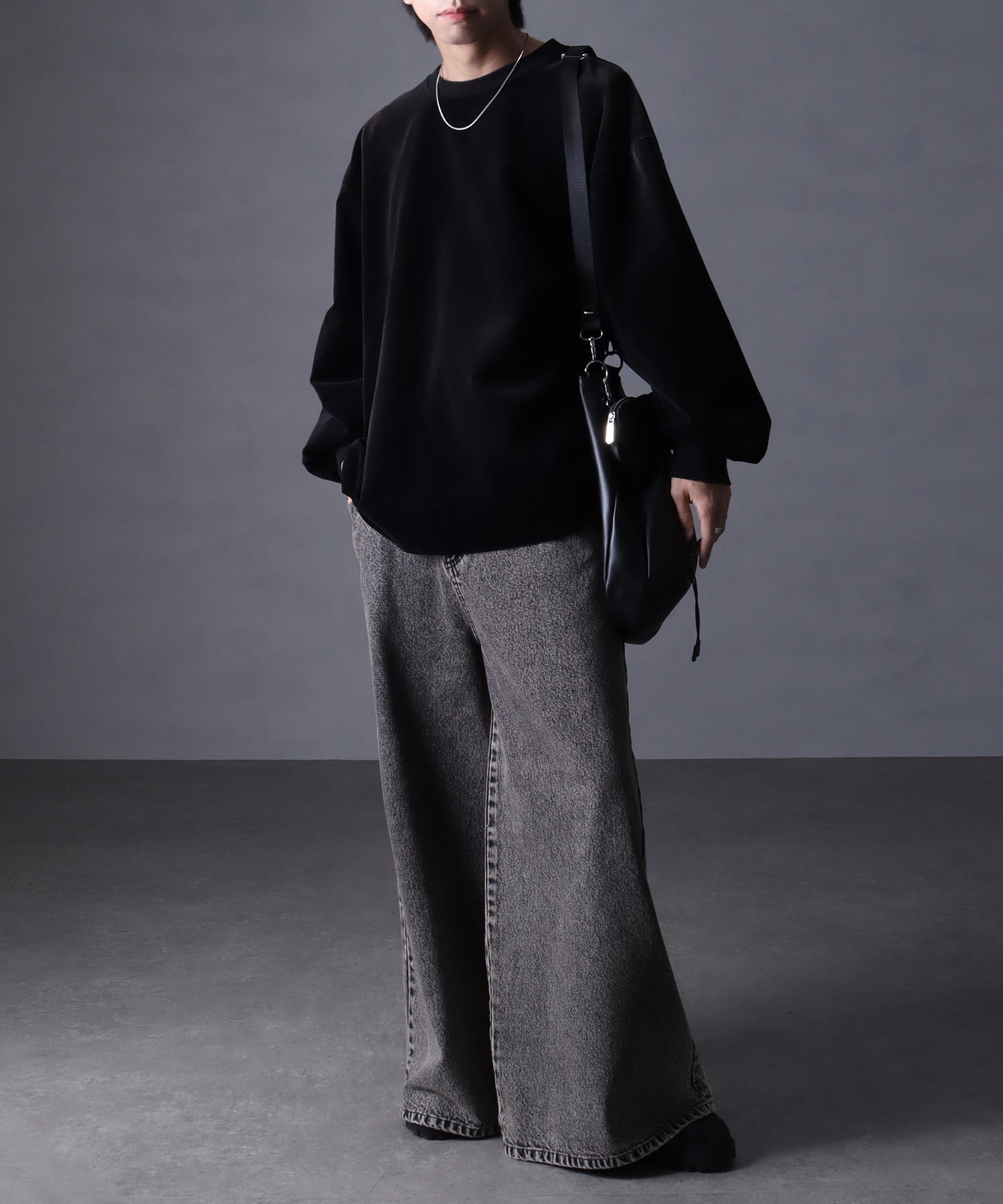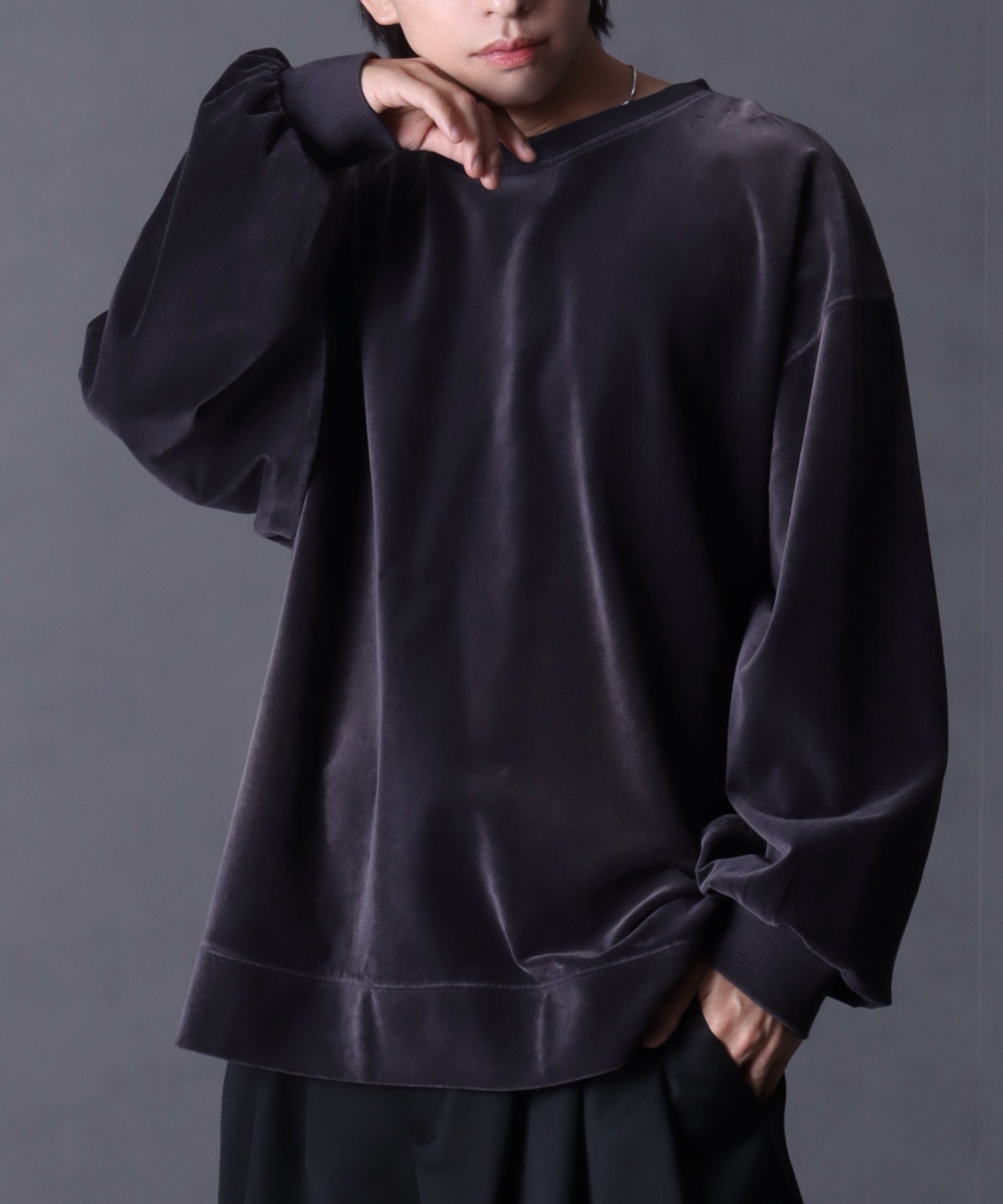 【Art re A】welise 復古天鵝絨圓領寬鬆長袖T恤