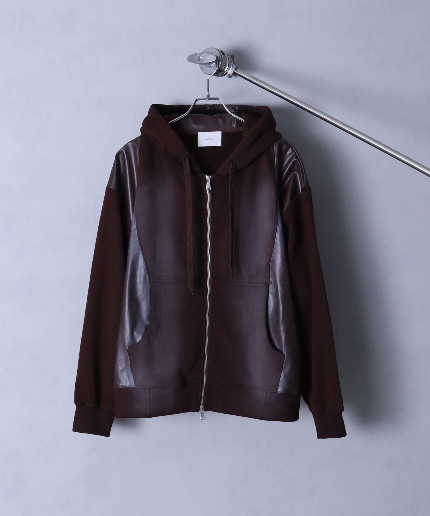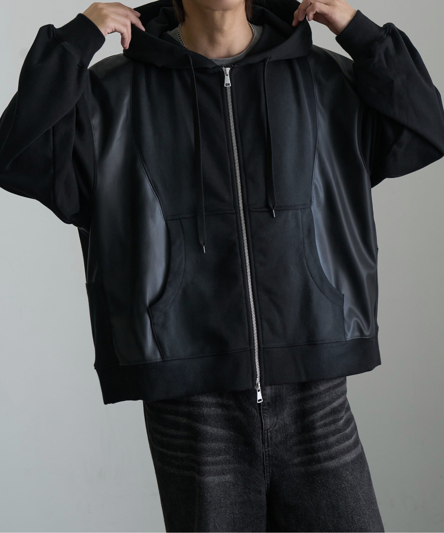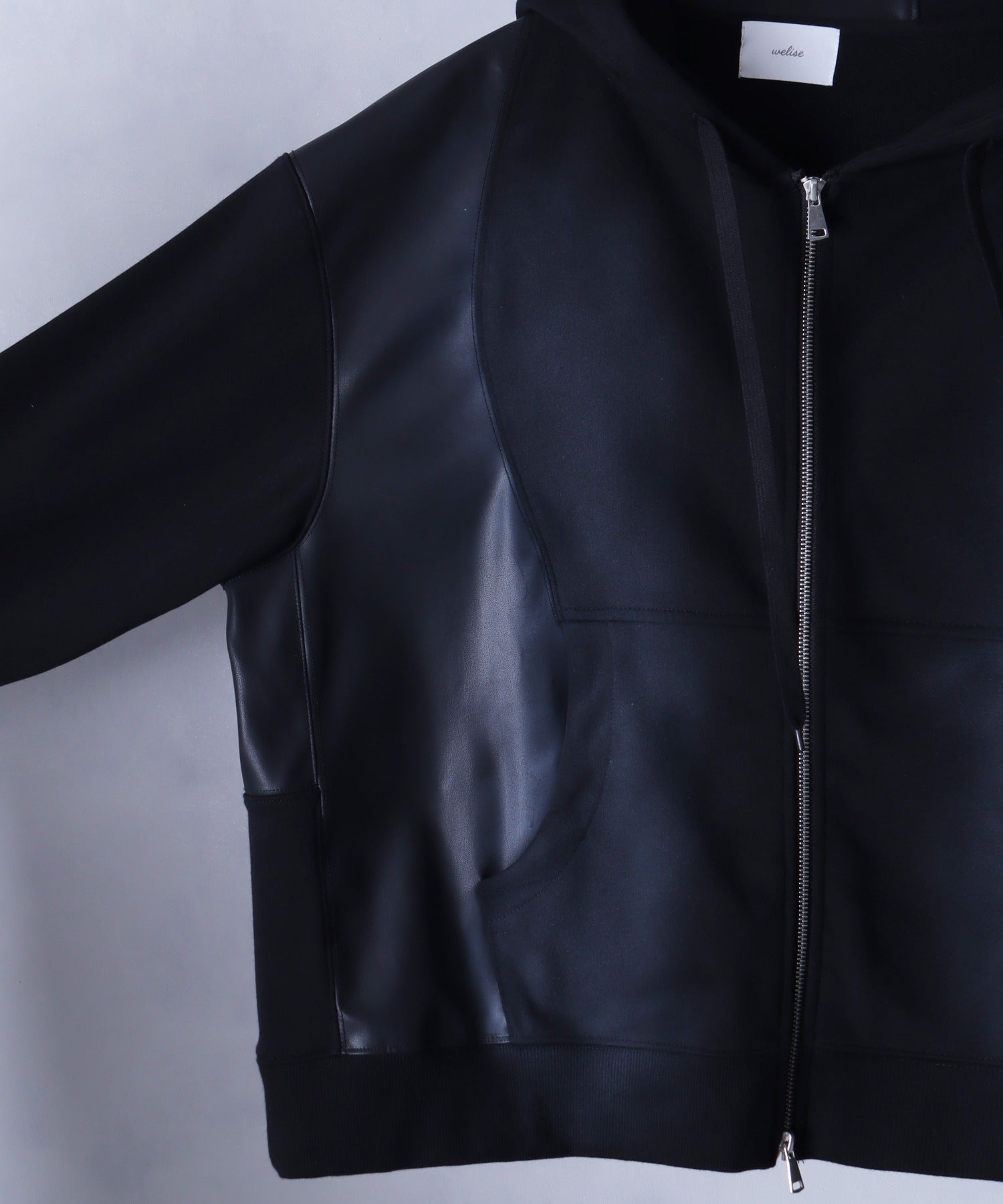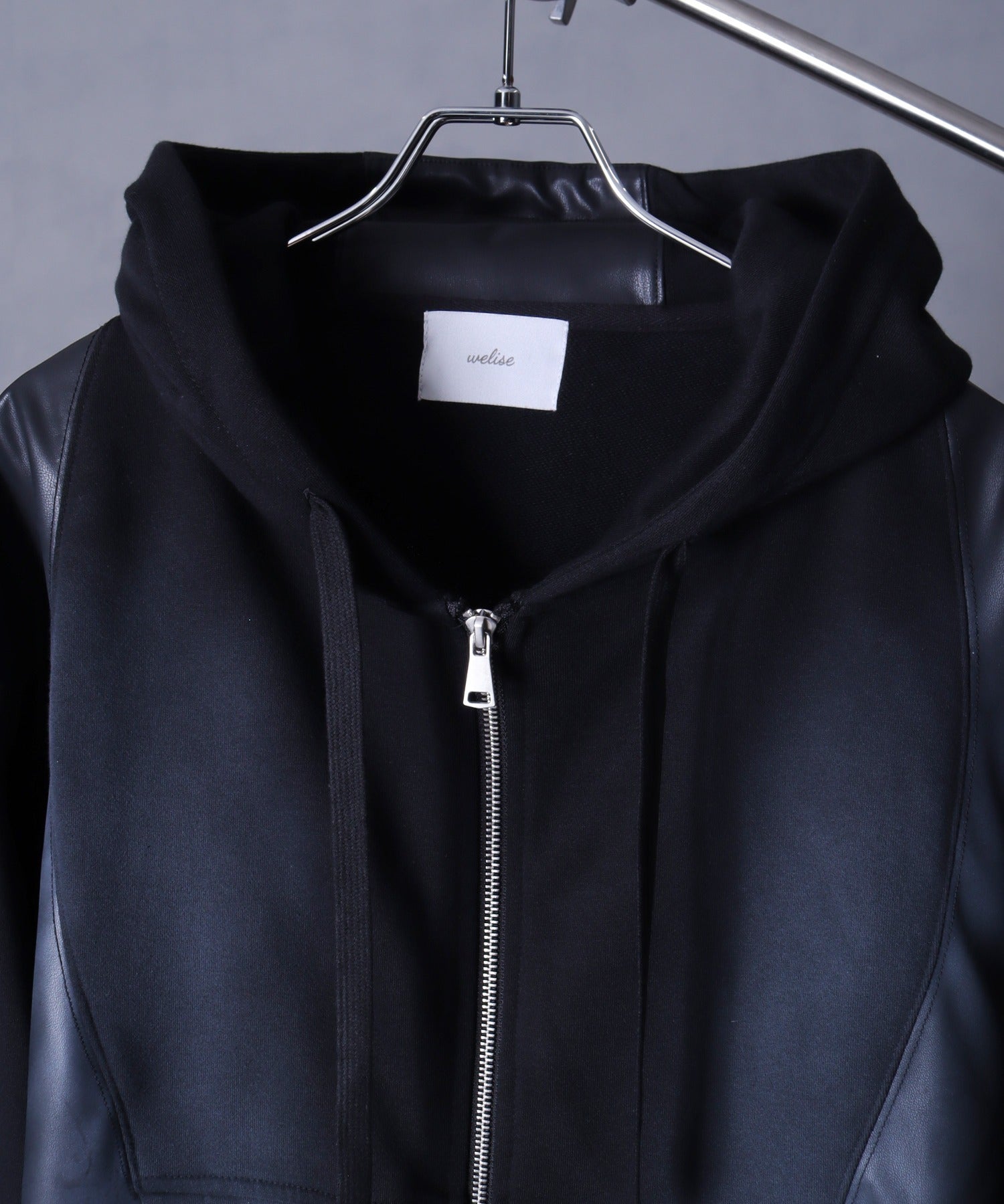【Art re A】welise 質感仿舊加工PU皮革拼接連帽外套 日本預購