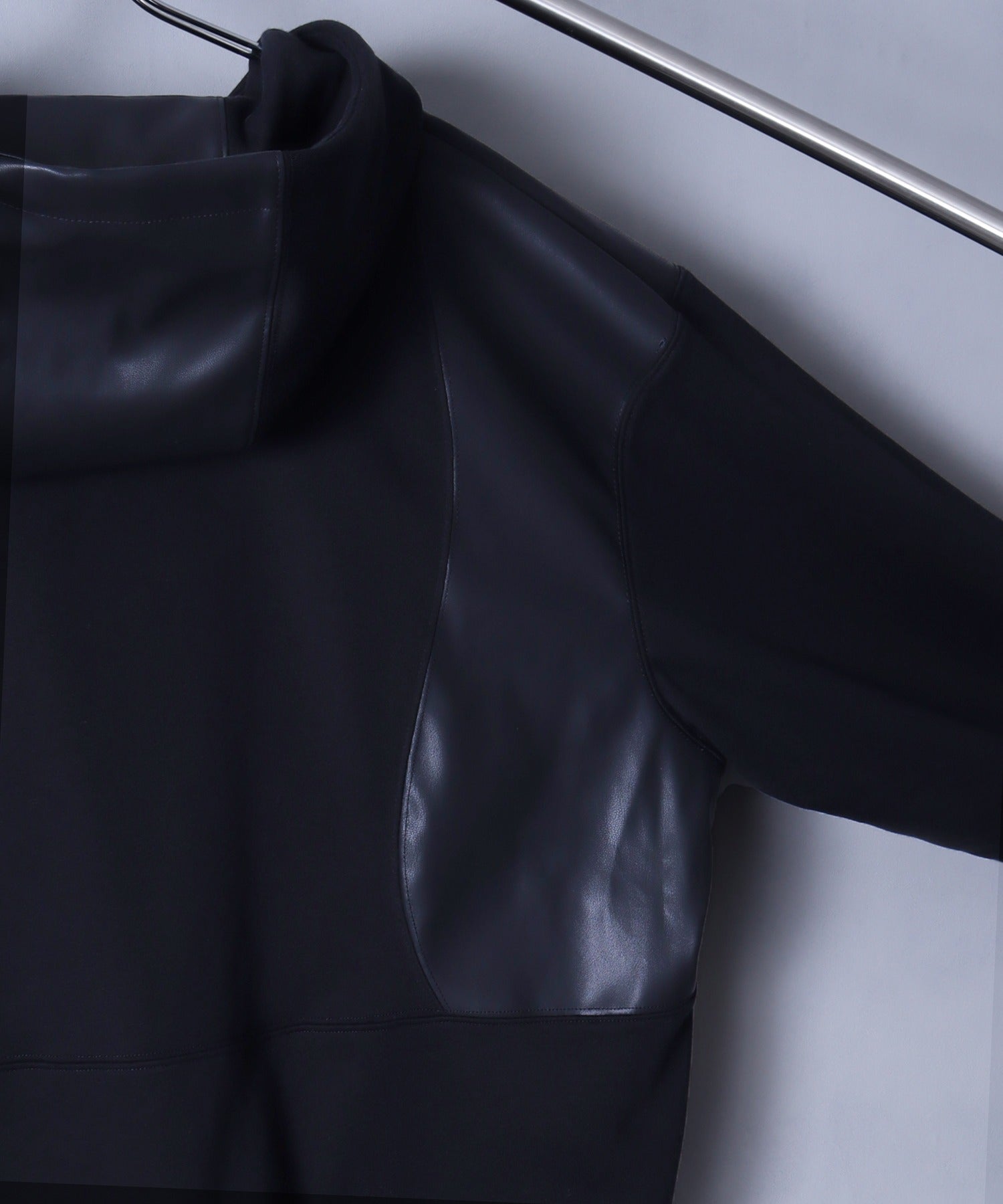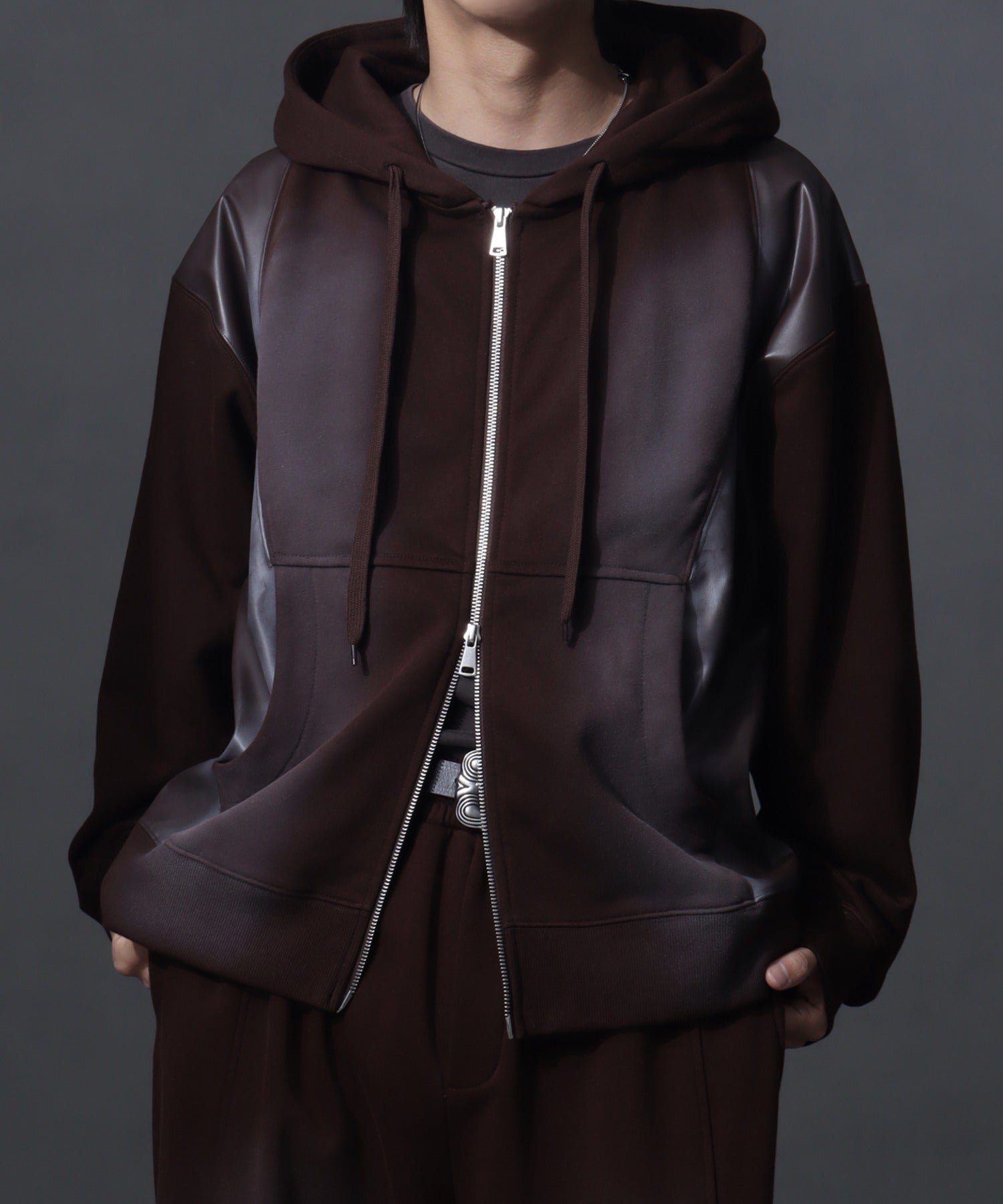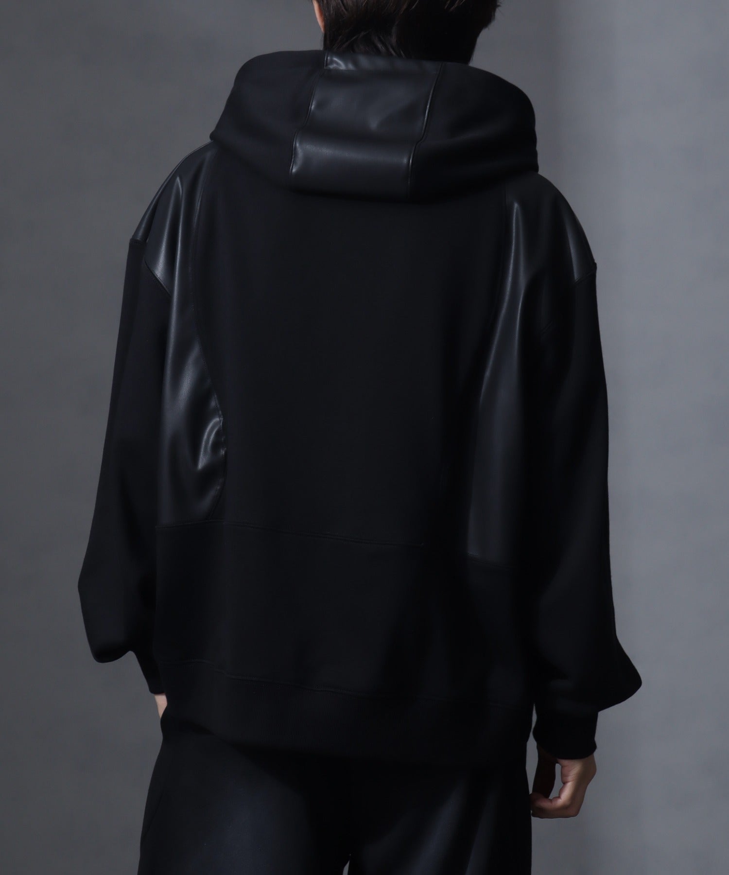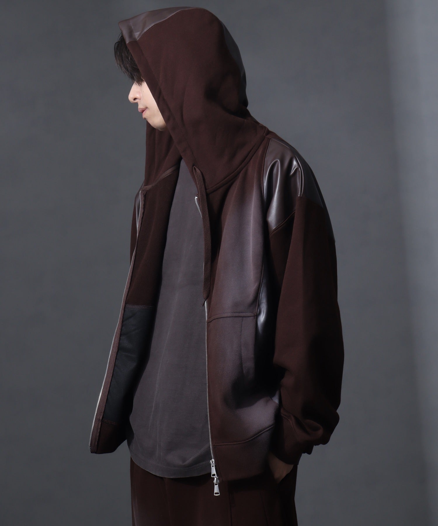 【Art re A】welise 質感仿舊加工PU皮革拼接連帽外套 日本預購