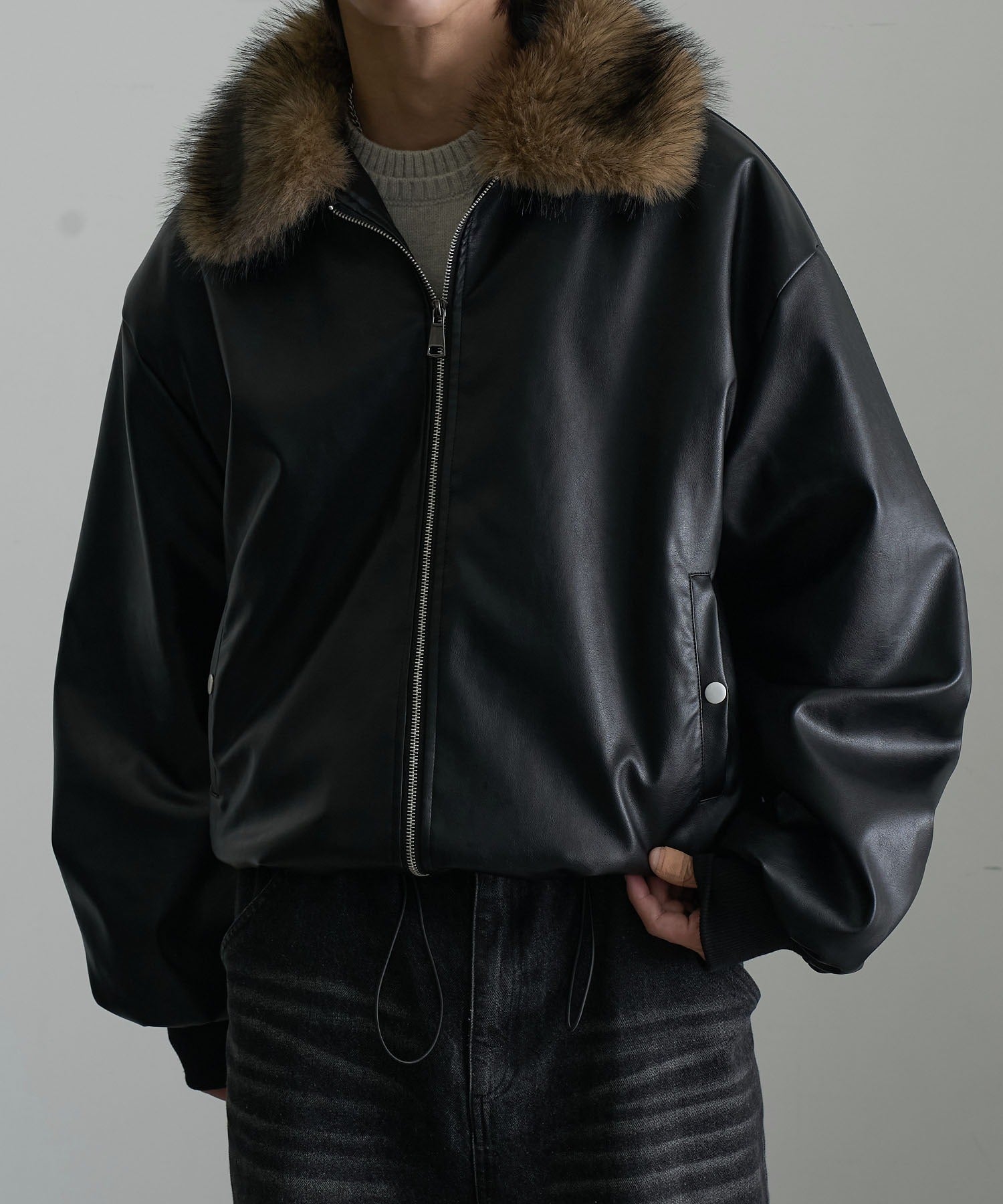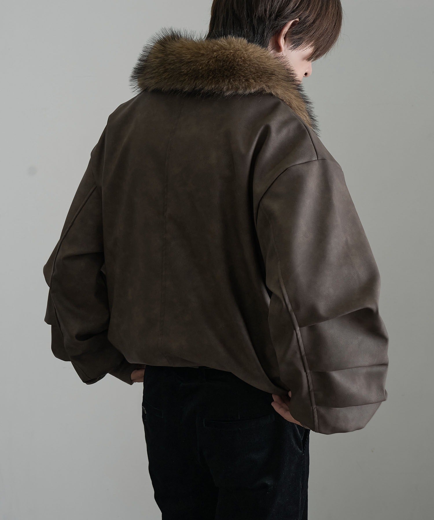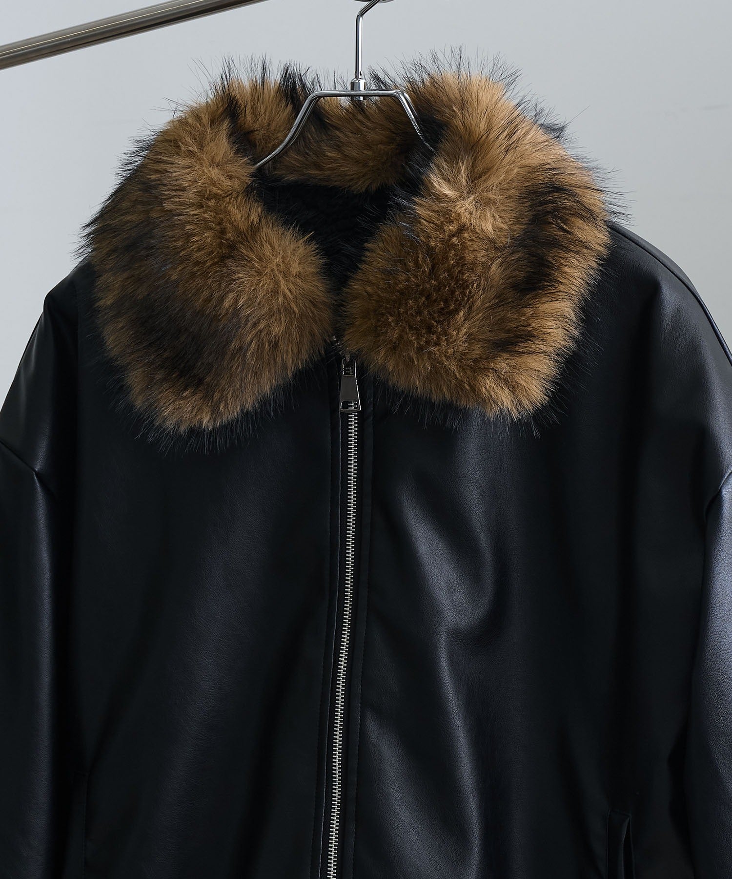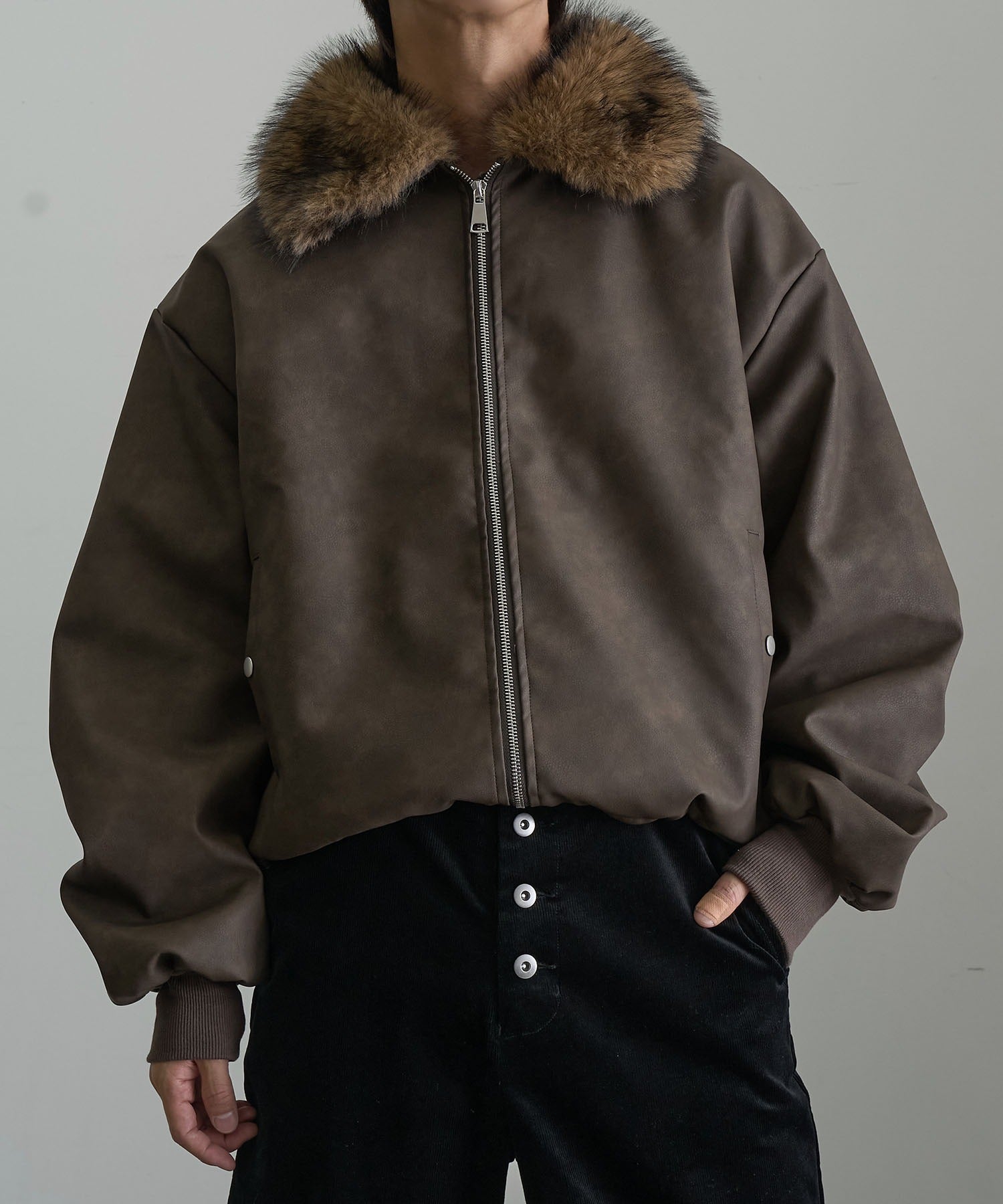 【Art re A】welise 質感PU皮革x可拆式毛領飛行外套