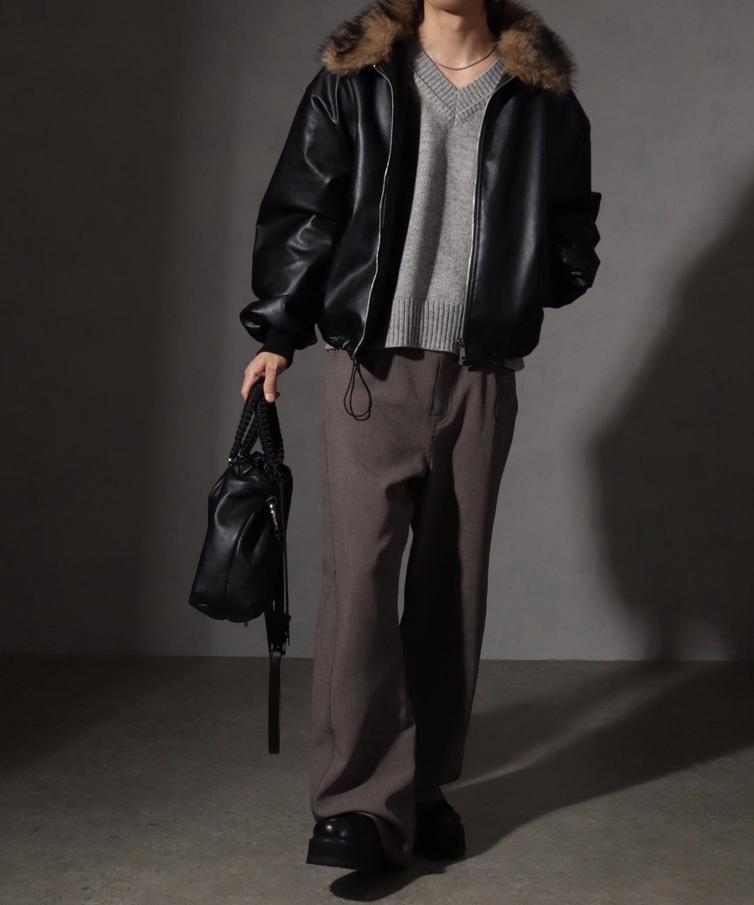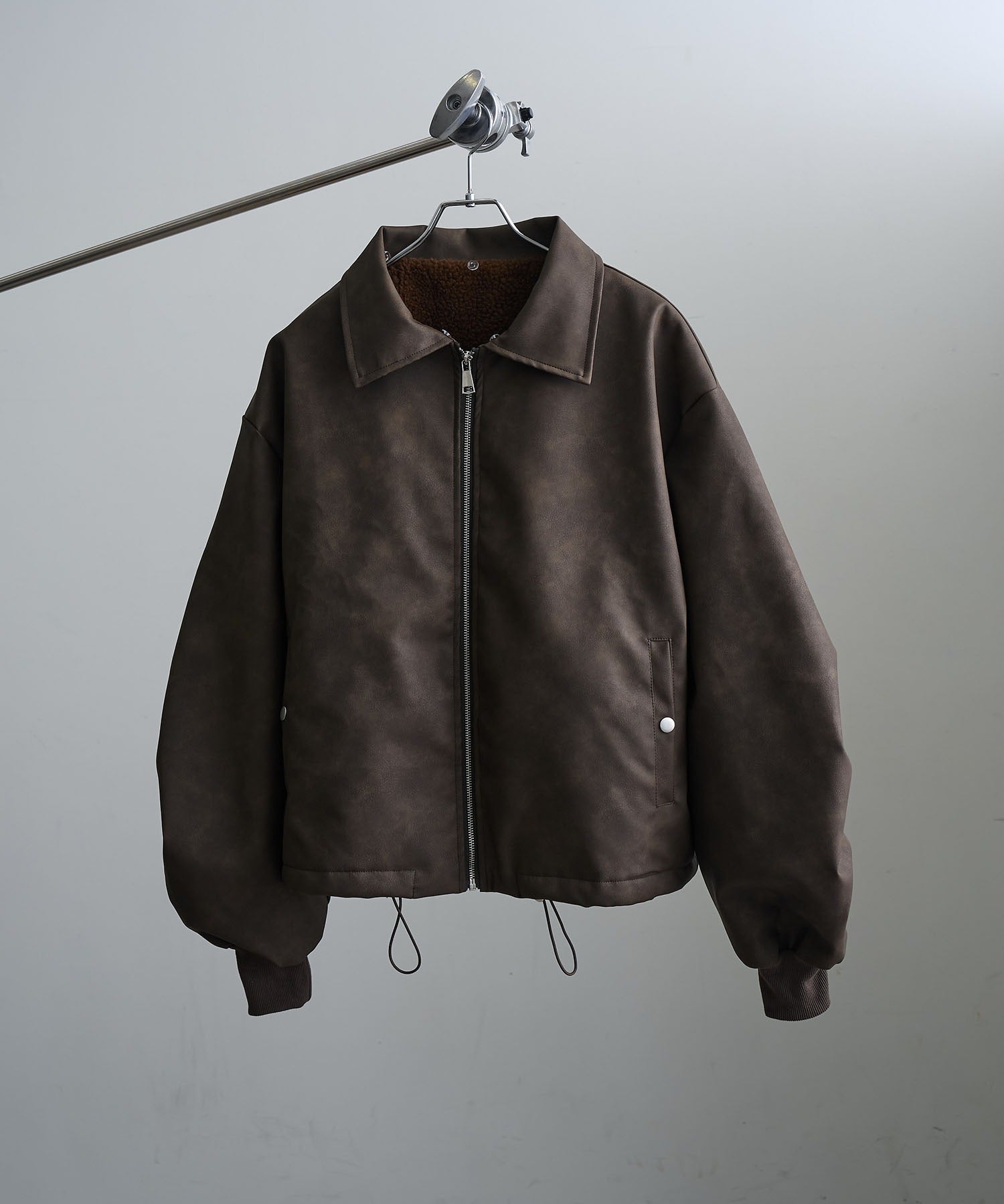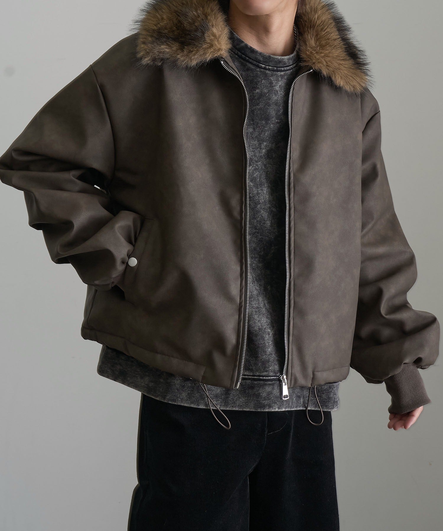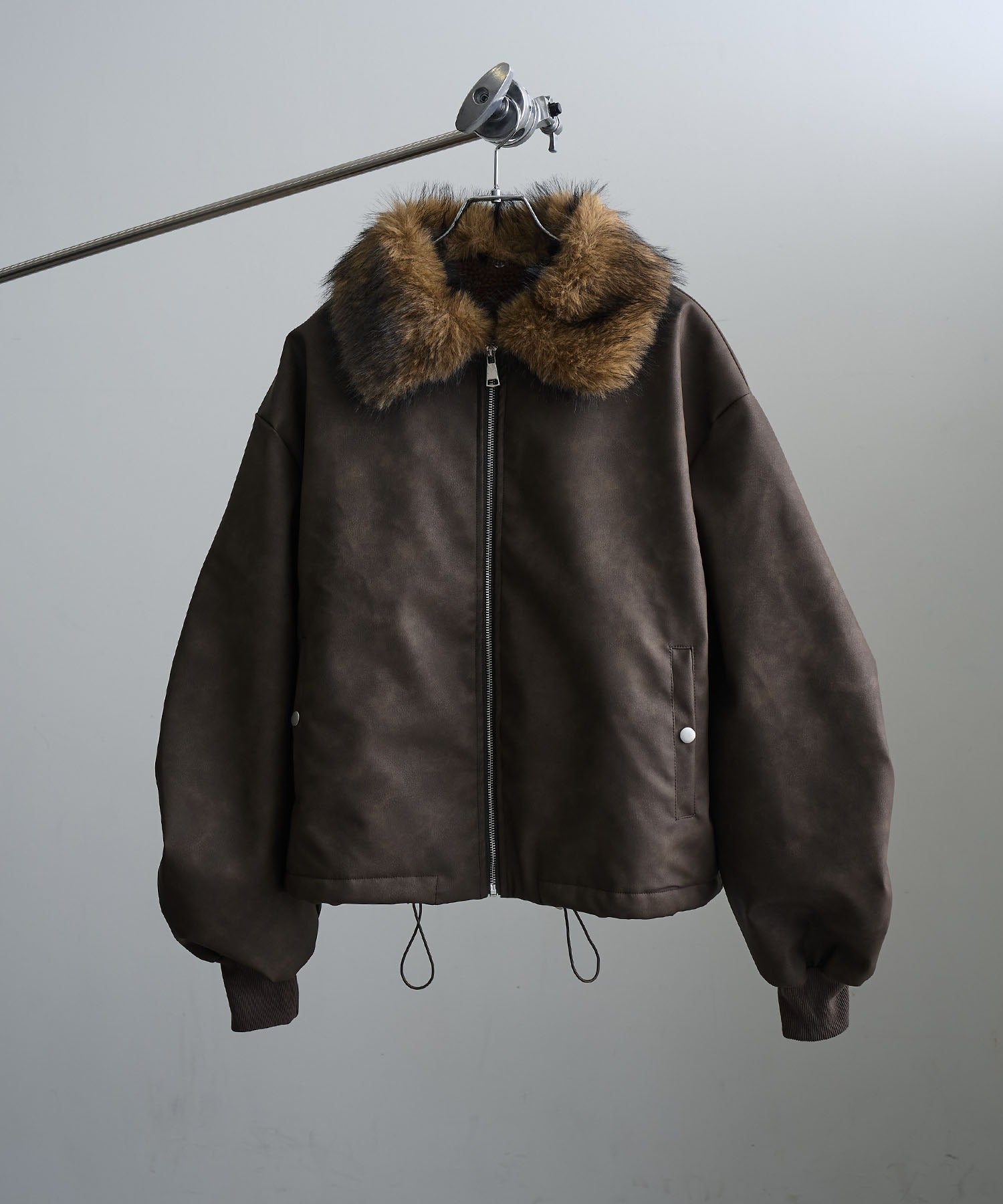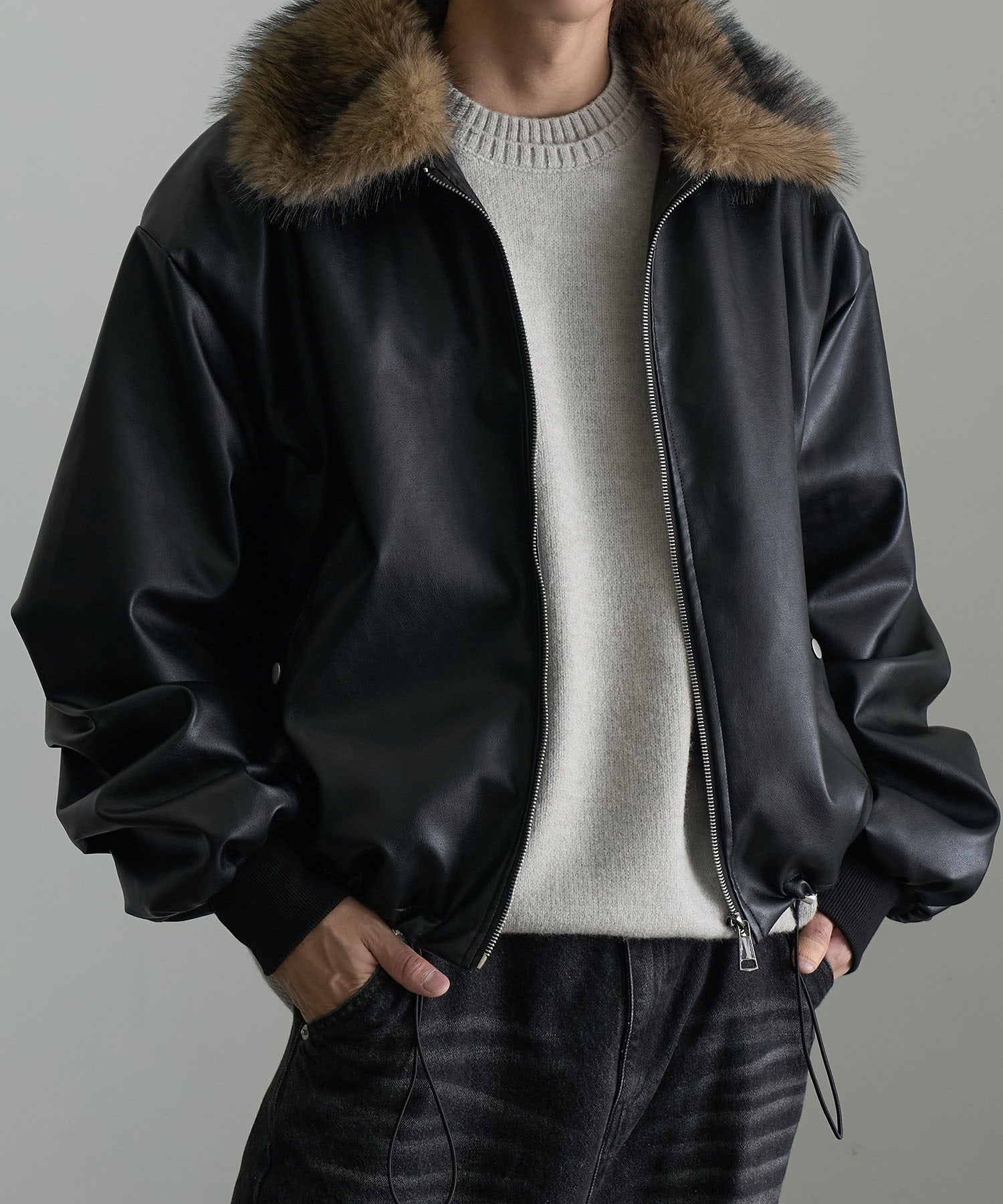 【Art re A】welise 質感PU皮革x可拆式毛領飛行外套