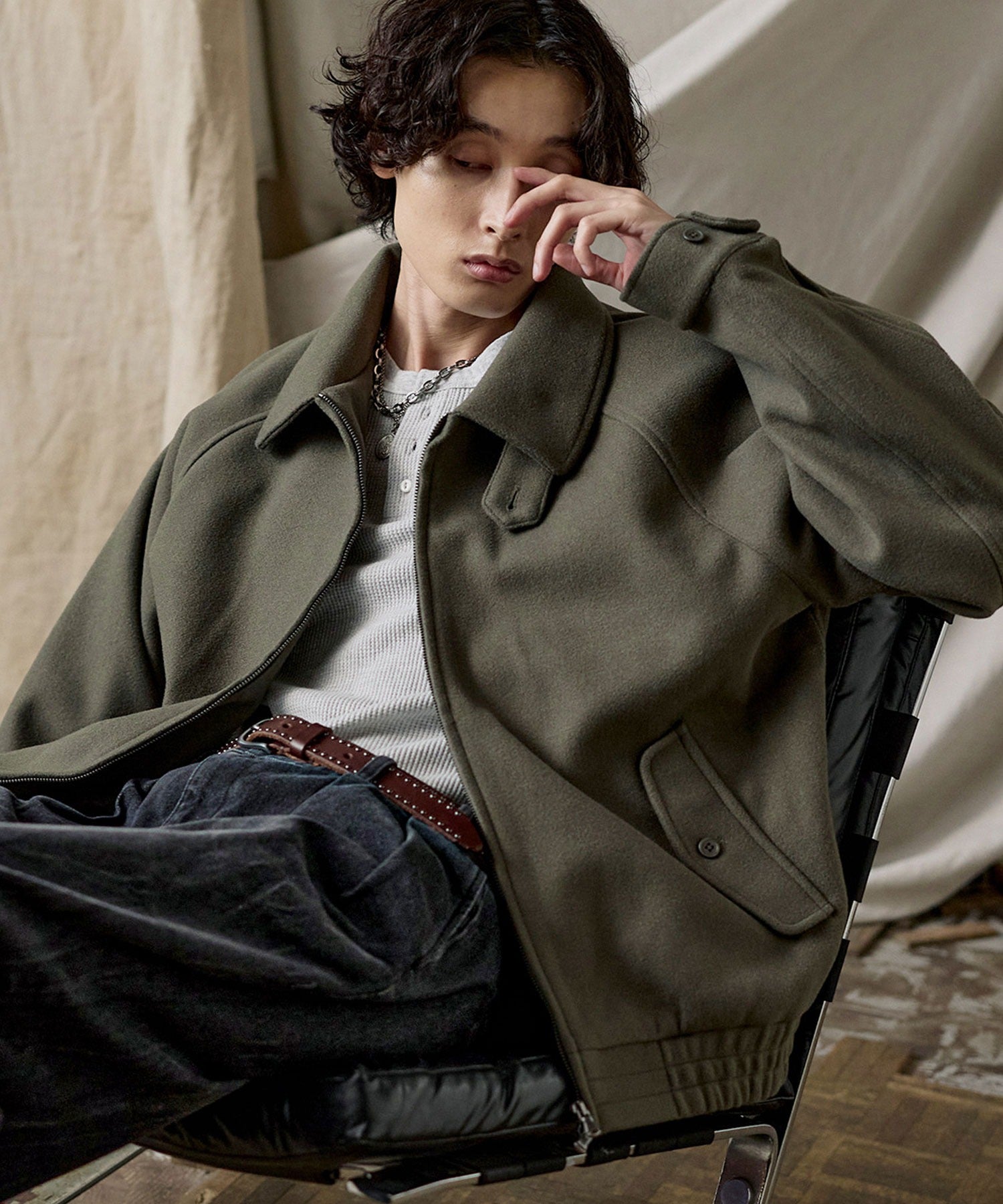 ● 寬鬆的版型與略大的衣領,在比例上呈現恰到好處的時尚感