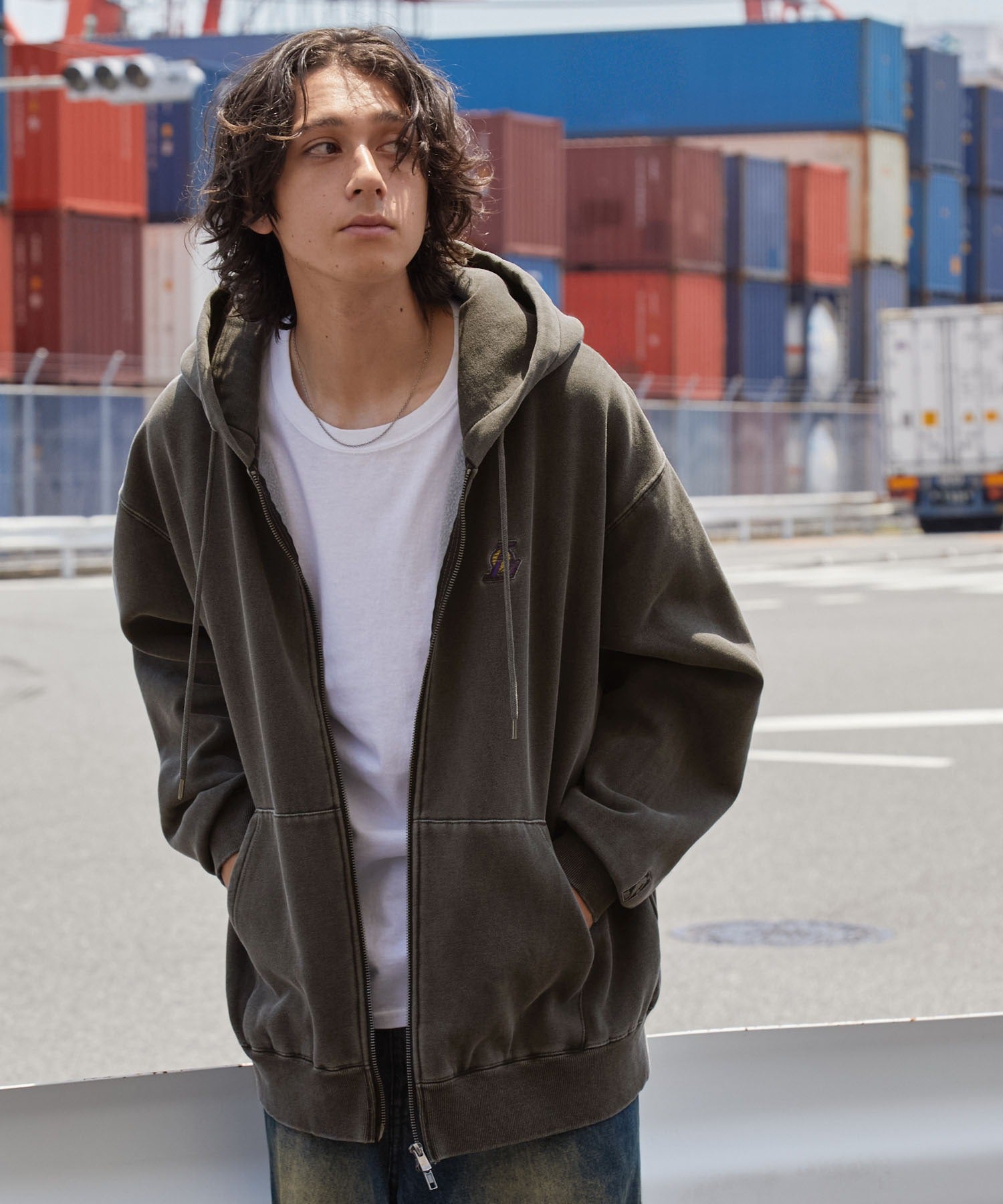 【EMMA CLOTHES】NBA系列 洛杉磯湖人 復古街頭 刺繡內刷毛連帽外套 日本預購