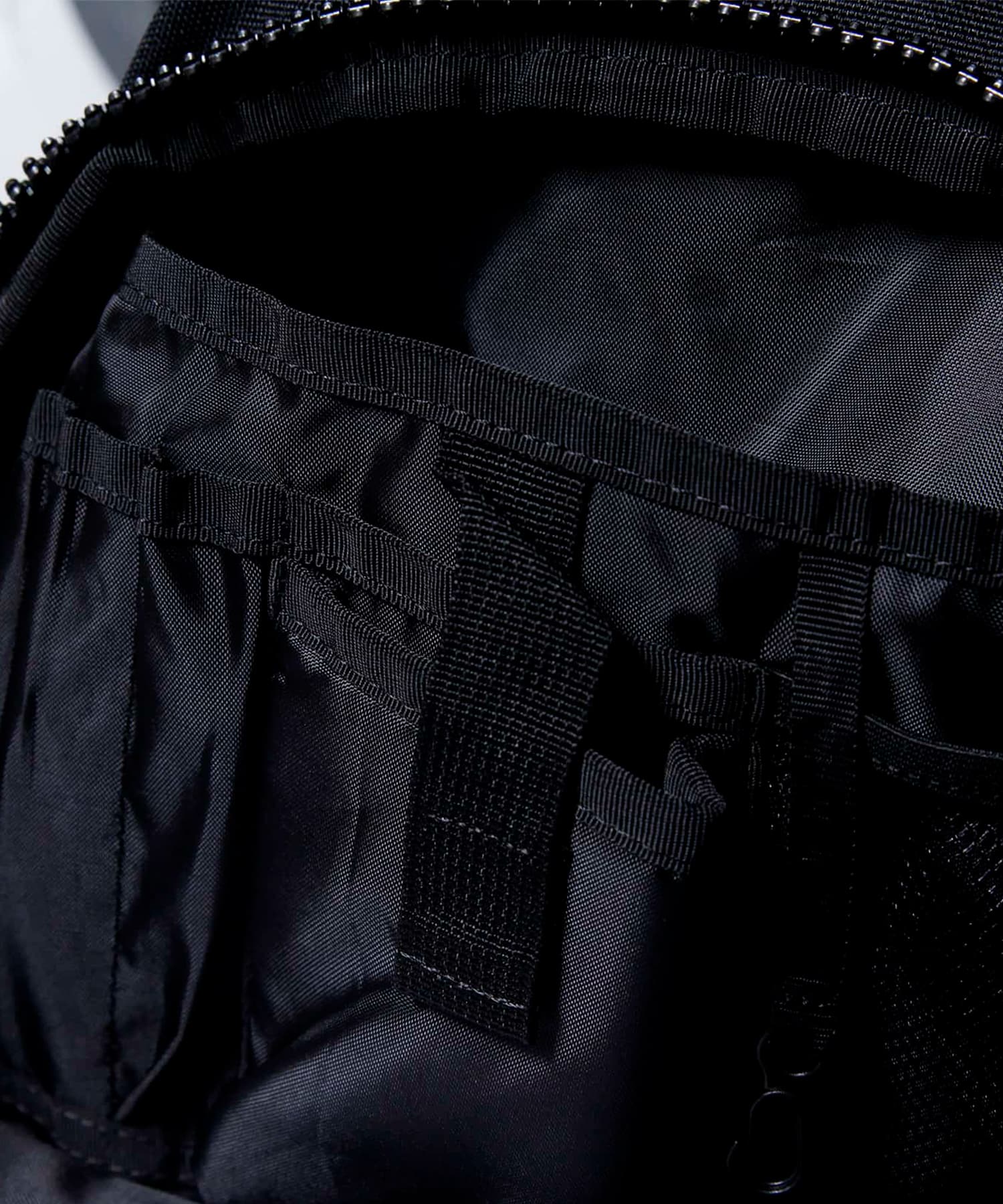 ● 肩帶上搭載了 MOUNTING T 系統,可用來固定相容的側背包或小包