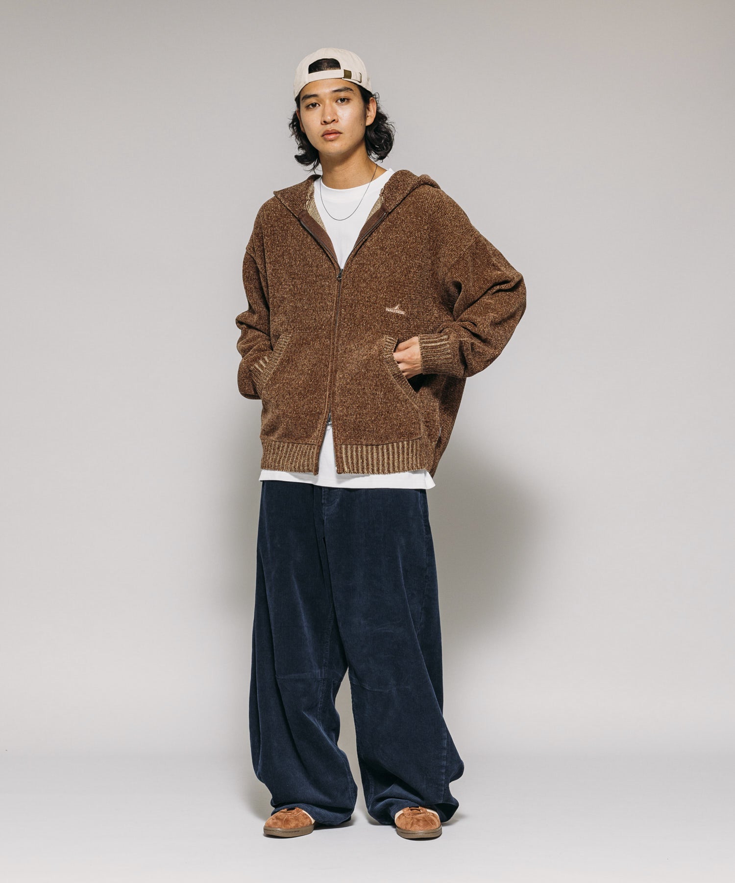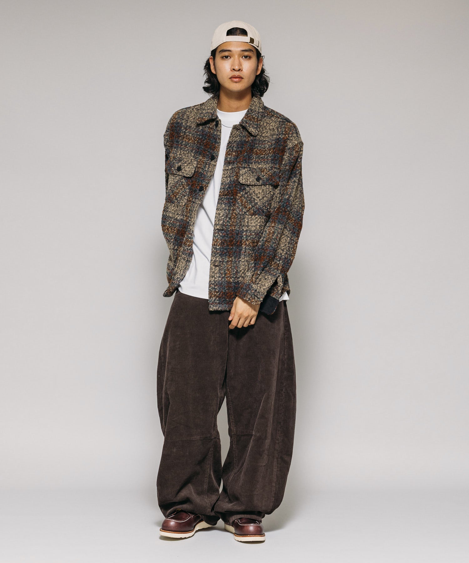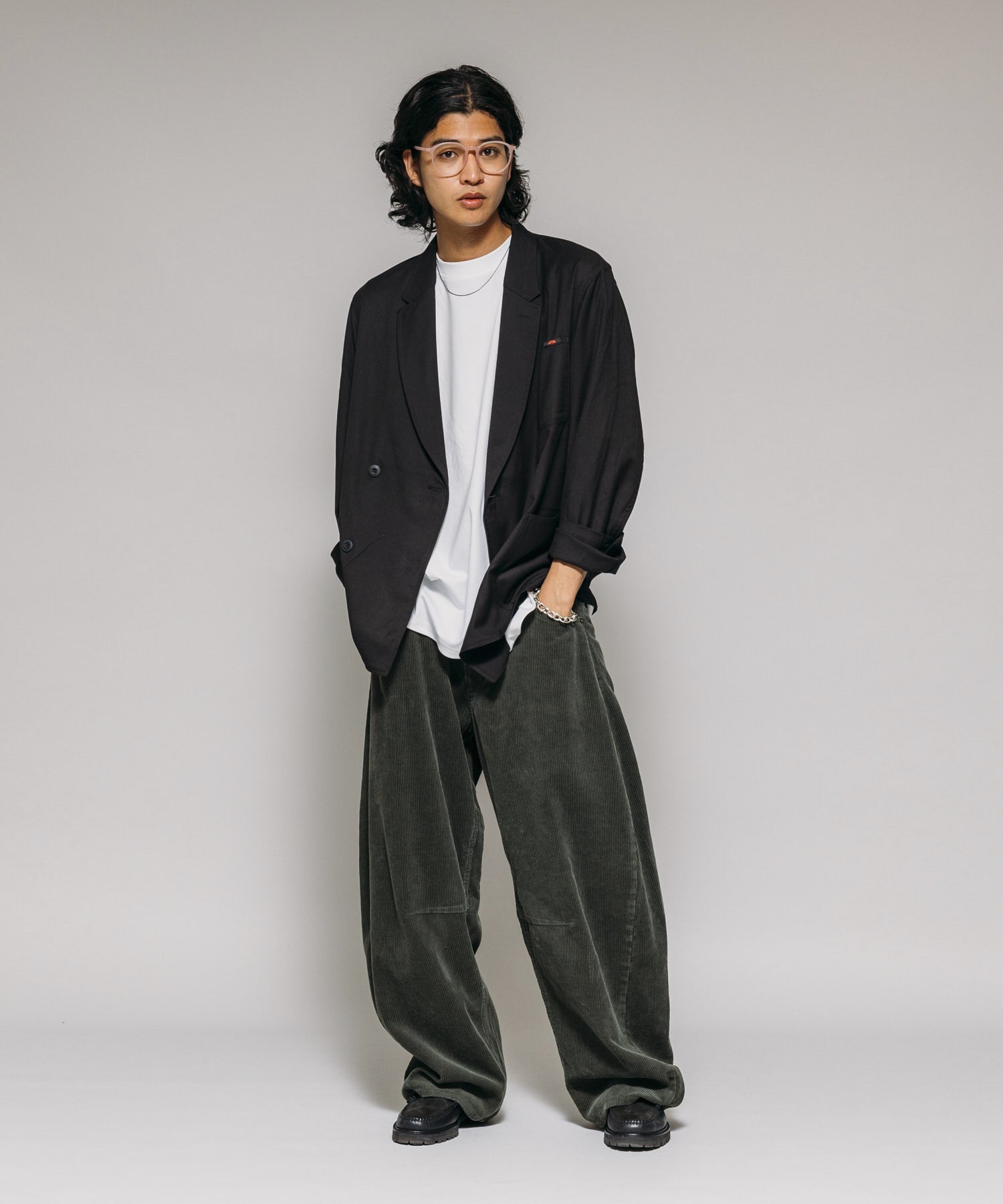 ● 秋冬定番的燈芯絨褲,結合寬鬆曲線版型,打造街頭感十足的休閒風格