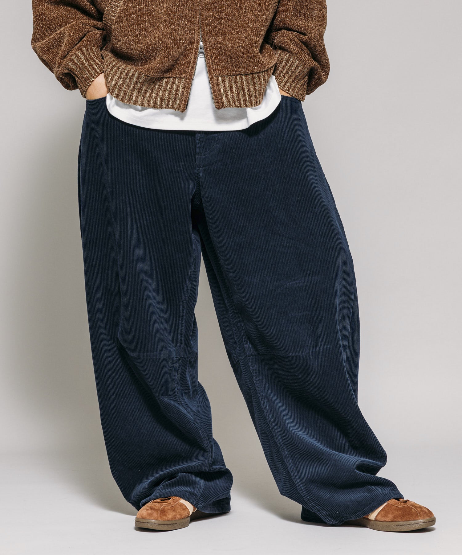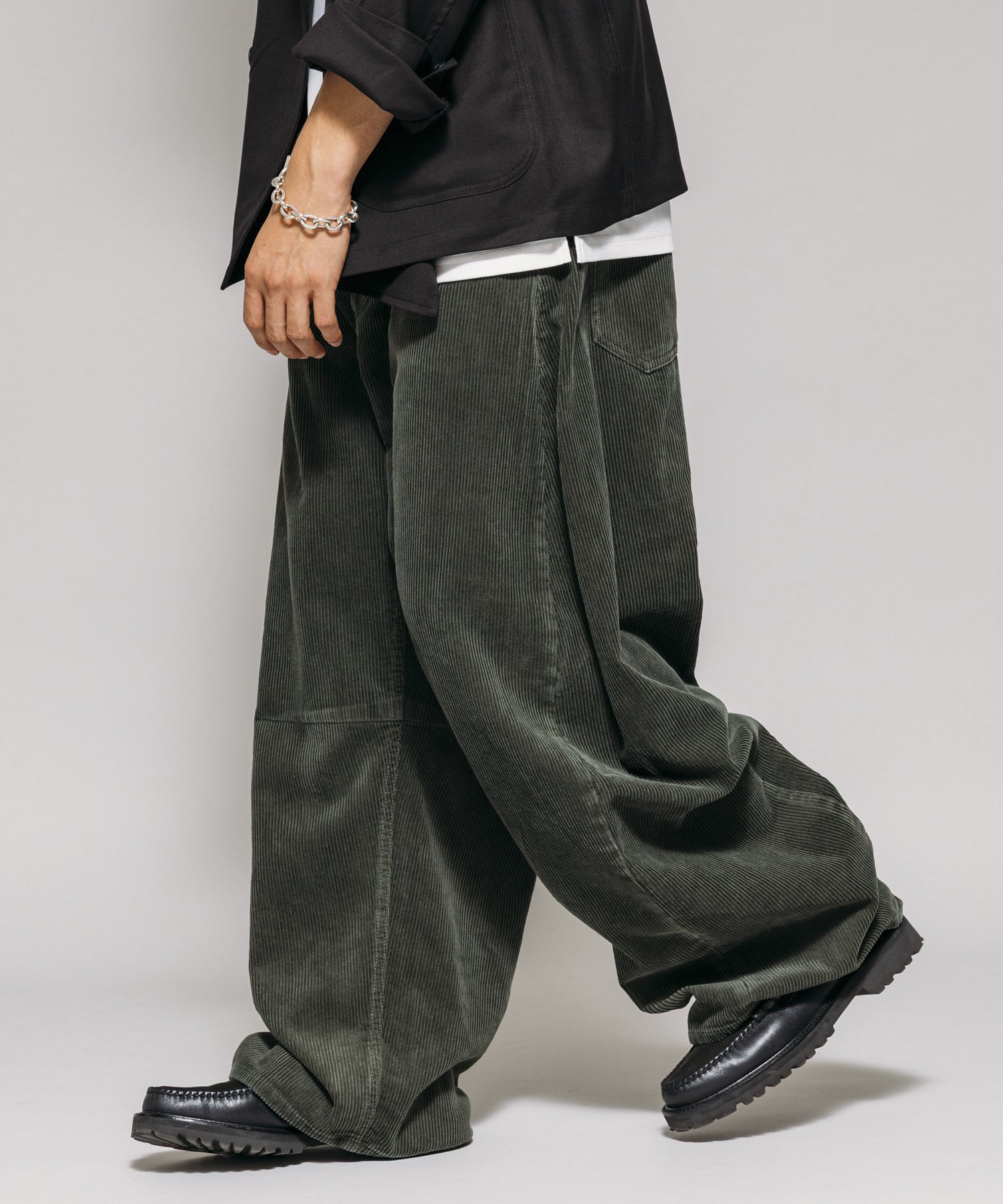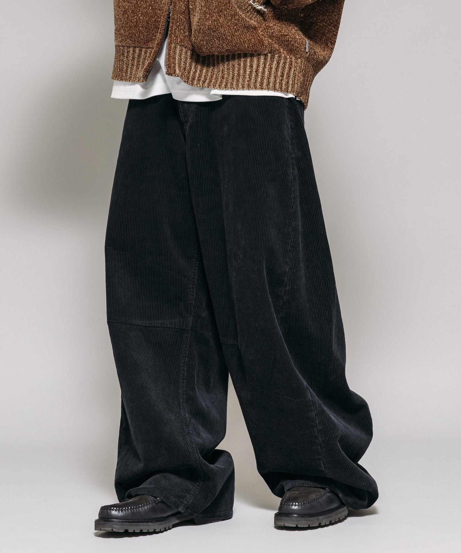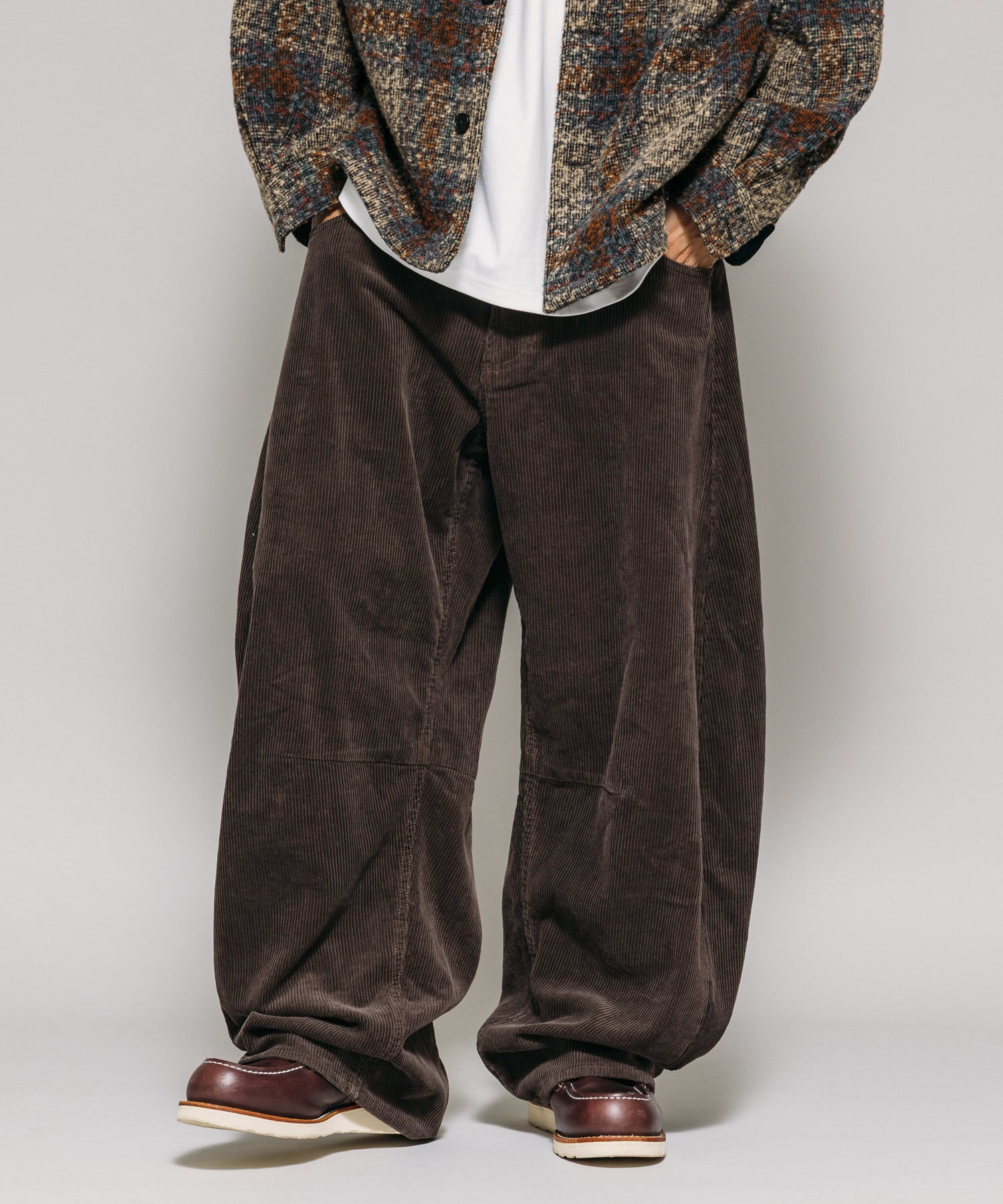 【FREAK’S STORE】寬版剪裁 曲線燈芯絨長褲