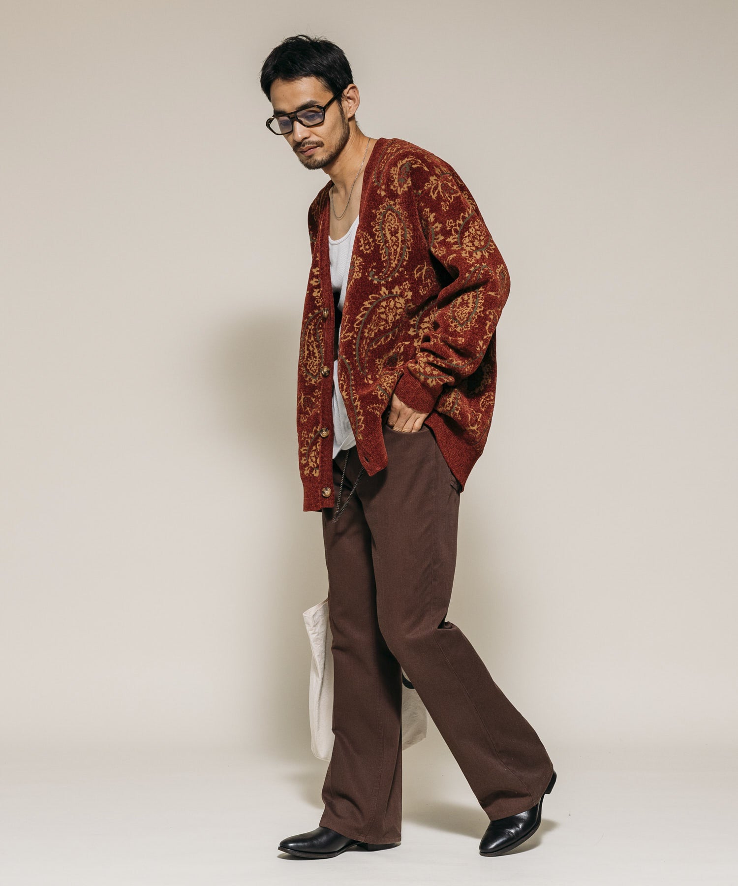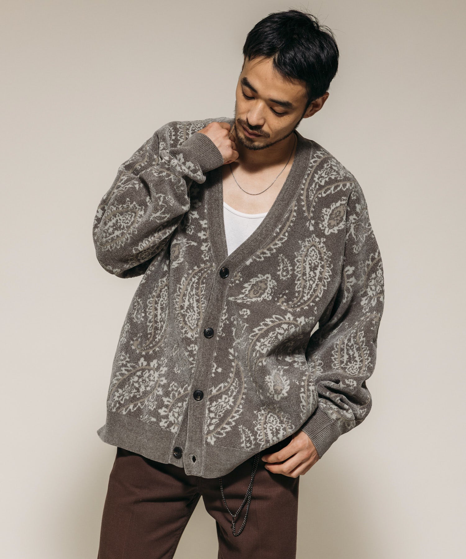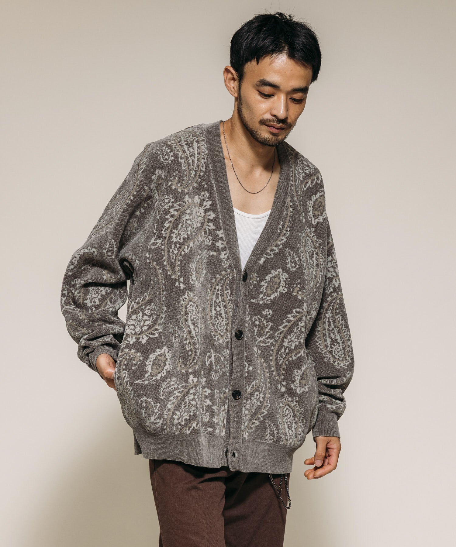散發復古氛圍、存在感十足的佩斯利滿版圖樣開襟衫