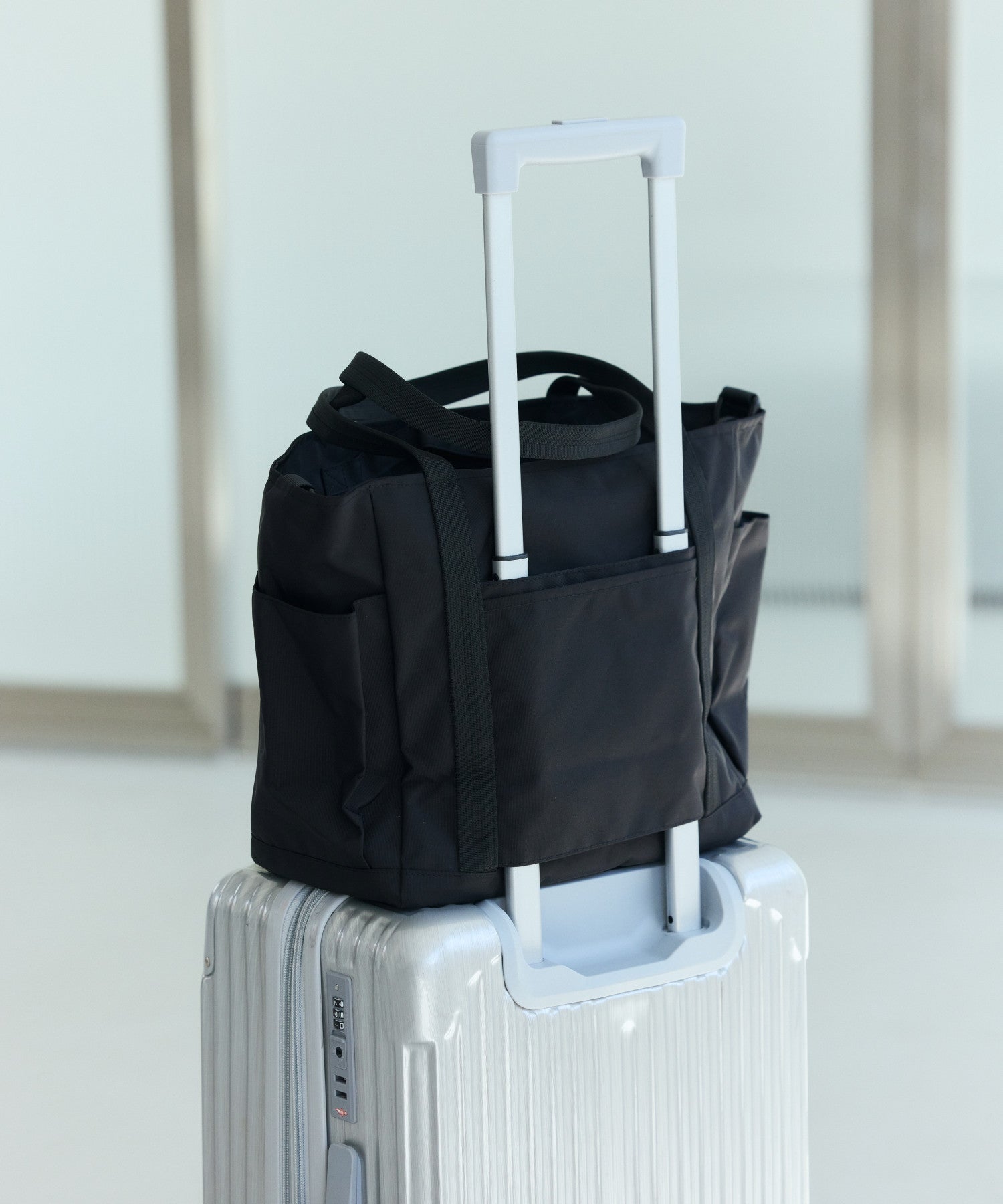 ● 外側配置4 個大容量口袋 與 行李箱拉桿固定帶,方便快速收納常用物品