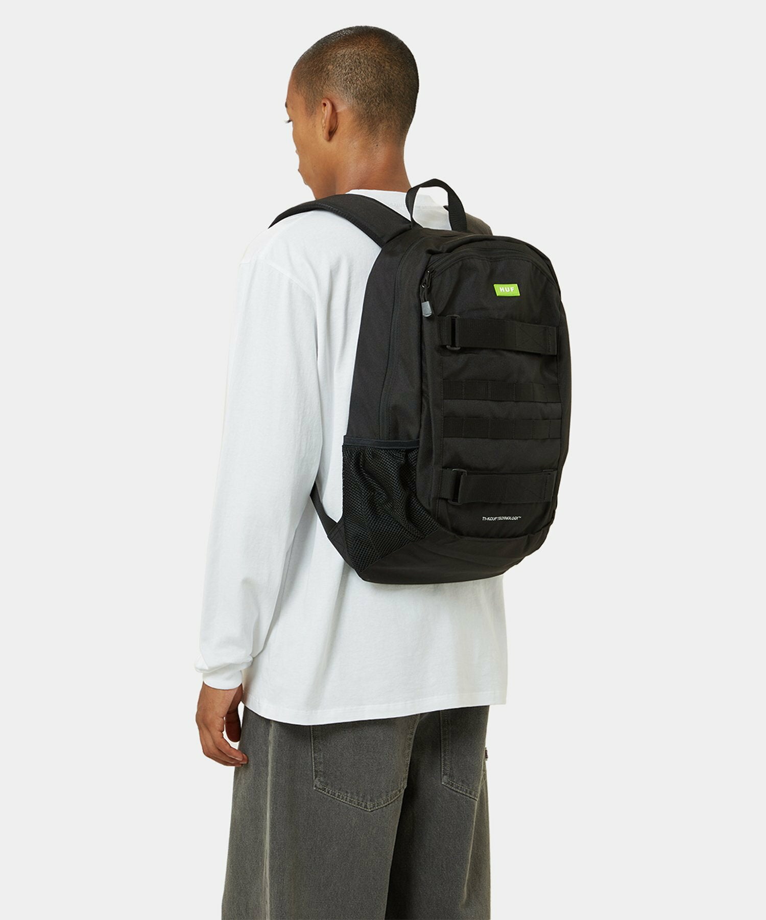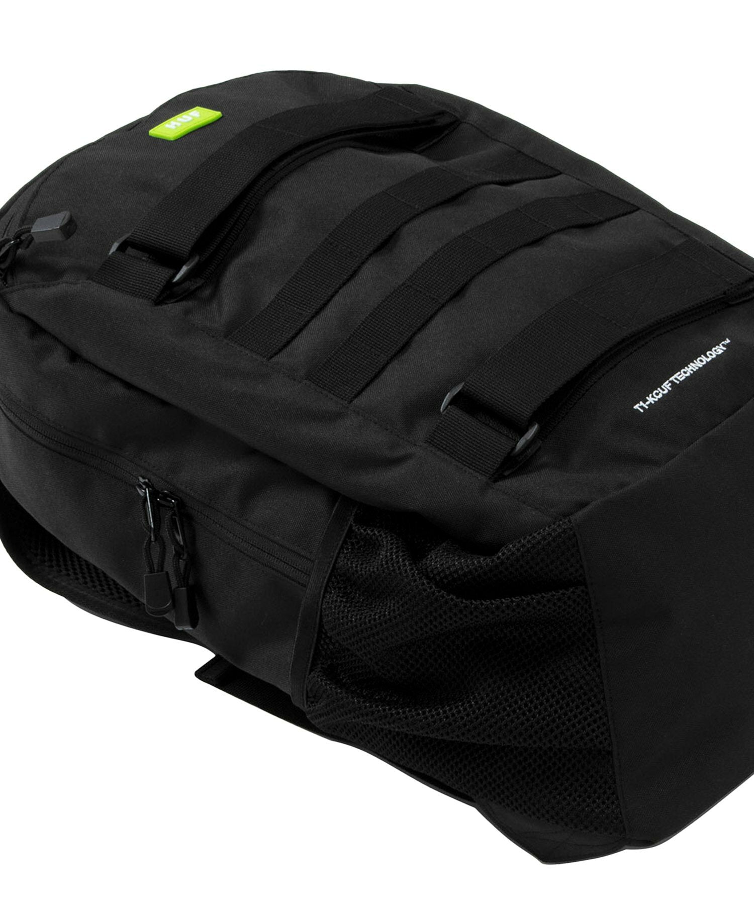 ● 配備側邊口袋與筆電收納夾層,正面附有雙條固定帶與 Daisy Chain 織帶設計