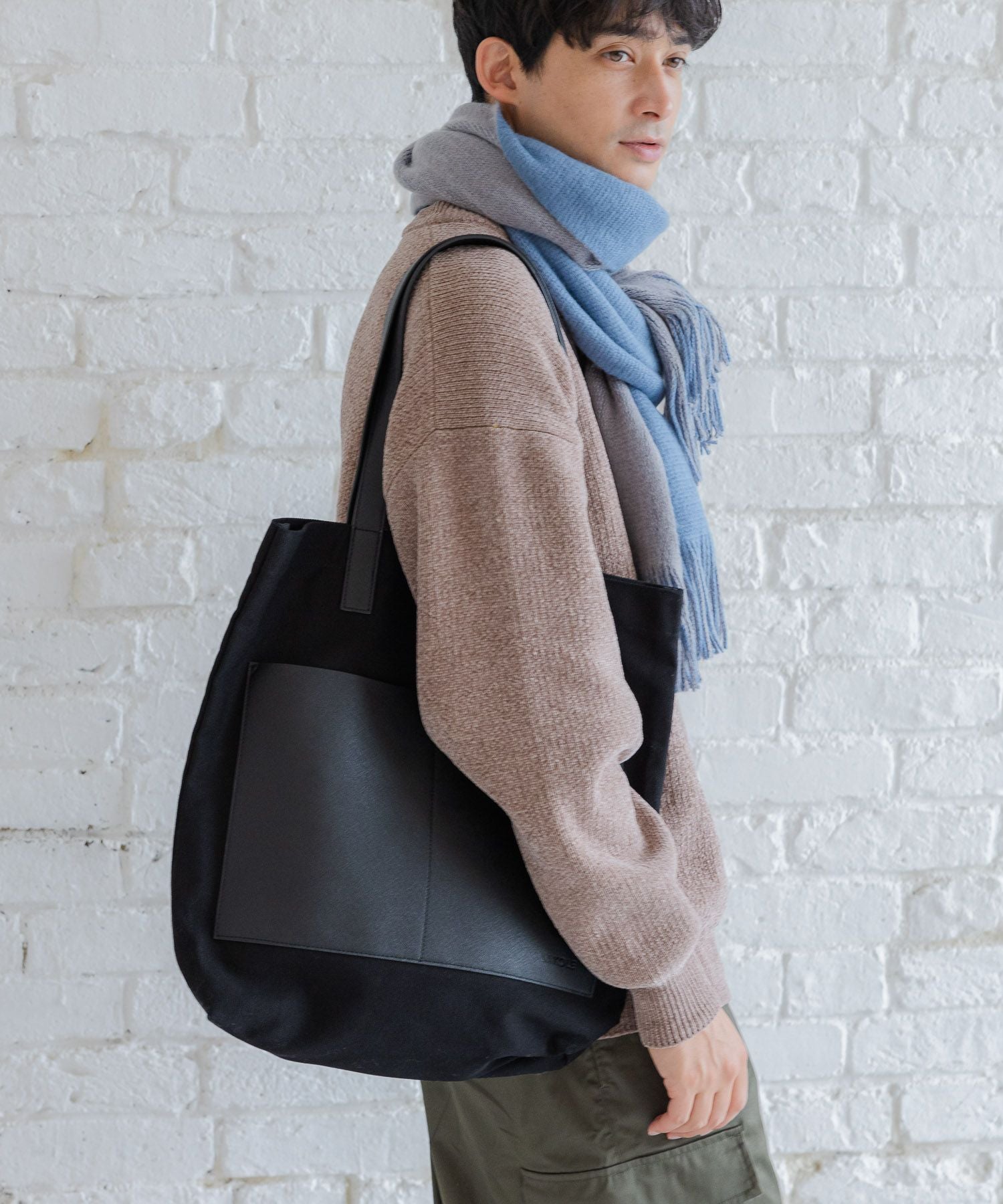 ● 正面配置口袋的帆布托特包