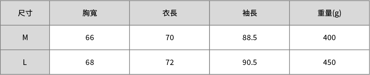 ※ 以上為依標準體型所提供的參考建議,實際還需測量為準