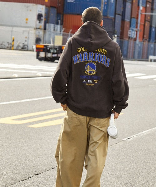 【MONO-MART】NBA系列 聯名款 復古風Warriors勇士隊刺繡印花帽T 日本預購