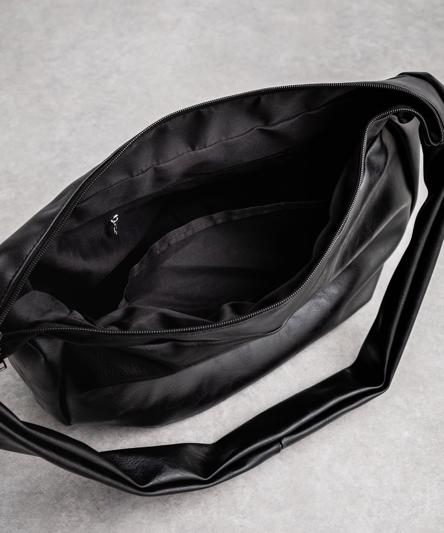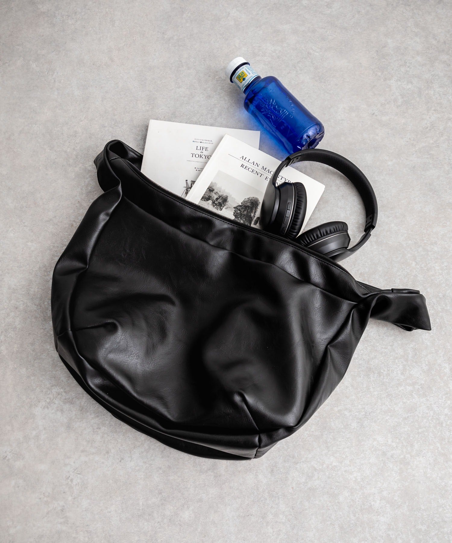可橫放 A4 尺寸文件!實用性極高的 PU 皮革肩背包