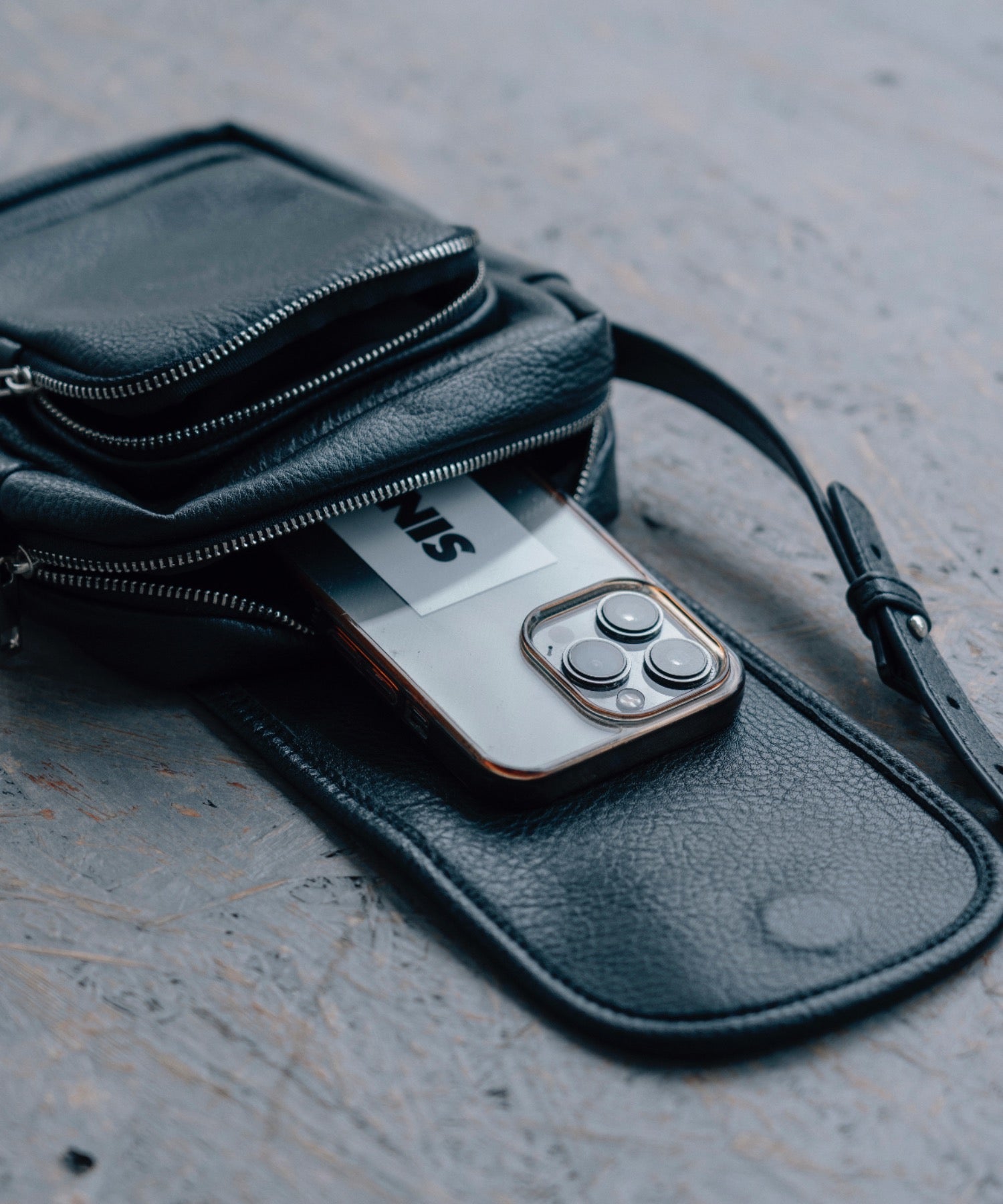 ● 肩帶部分非傳統的扣環調節,而採用「金屬鉚釘」設計,可調節長度的同時讓整體視覺更俐落,突顯包身質感